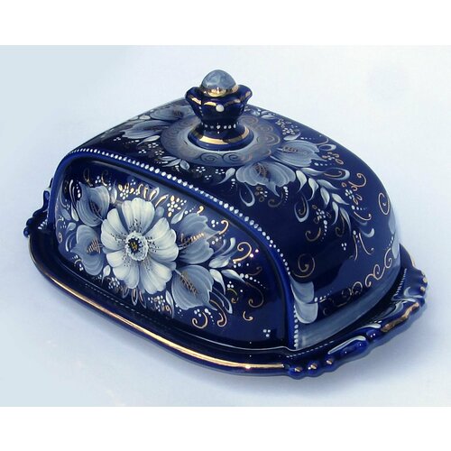 Масленка фарфоровая темно-синего цвета. Ручная надглазурная роспись с золотом Россия.: сравнение цен, характеристики, фото, актуальное наличие и цены.