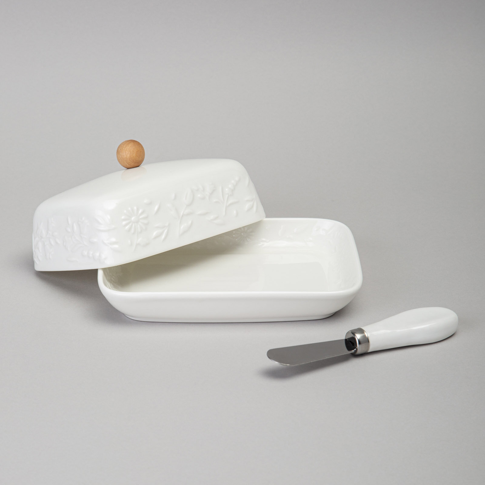 В комплекте с масленкой идет специальный нож для масла, который позволяет аккуратно и без труда намазывать масло на хлеб.