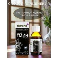 В отличие от других производителей, бренд Барака выпускает масло черного тмина который имеет сертификат Organic. Масло получают путем холодного отжима, что позволяет сохранять все полезные свойства черного тмина. Для внутреннего и наружнего применения. В процессе производства предусматривается исключительно холодный отжим, благодаря чему сохраняется максимум полезных веществ. Масло черного тмина содержит высокую концентрацию витамина Е, известное своими омолаживающими свойствами.