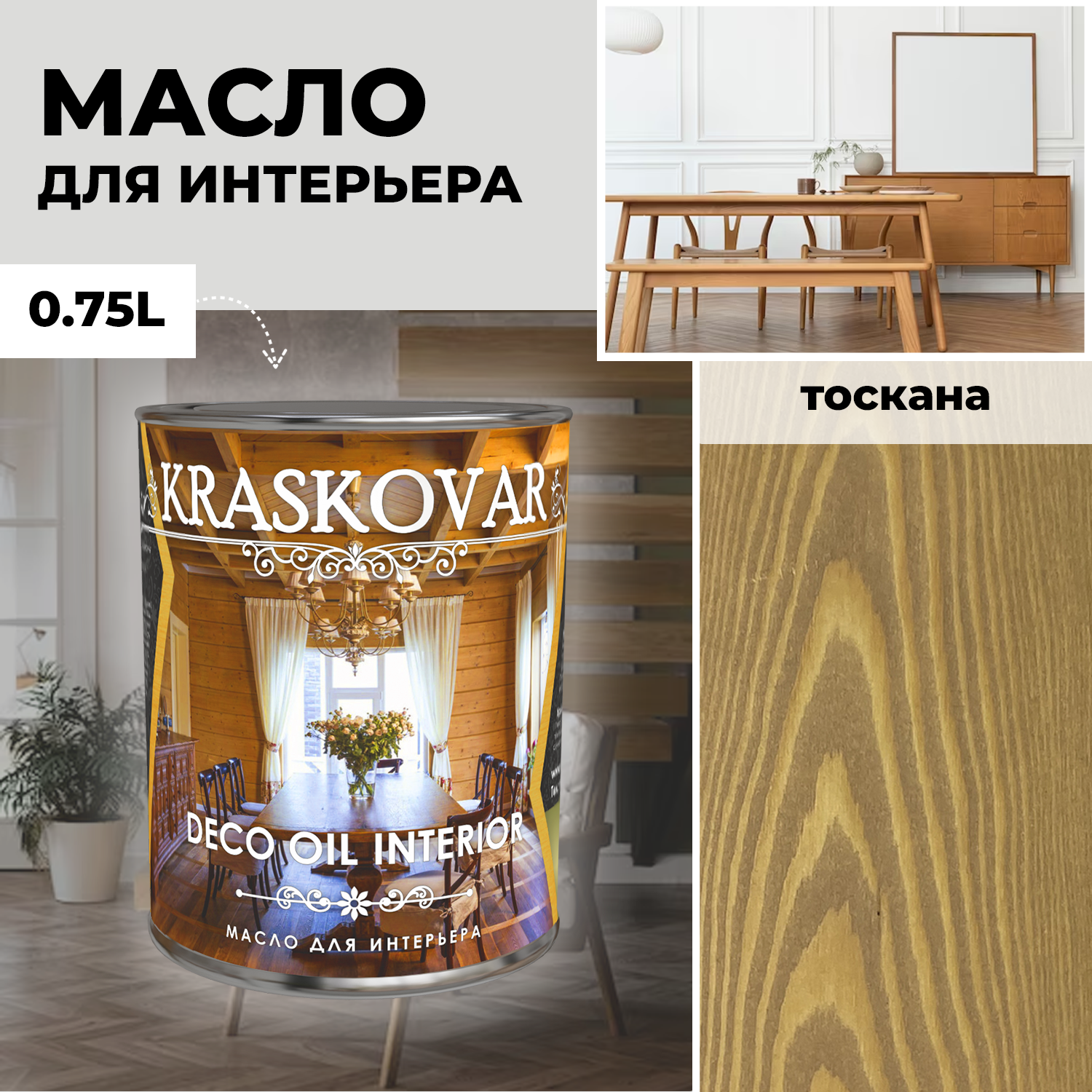 Купить Масло для дерева с воском Kraskovar Deco Oil Interior Тоскана 0,75л с доставкой по всей России. Масло для дерева с воском Kraskovar Deco Oil Interior Тоскана 0,75л: сравнение цен, характеристики, фото, актуальное наличие и цены.