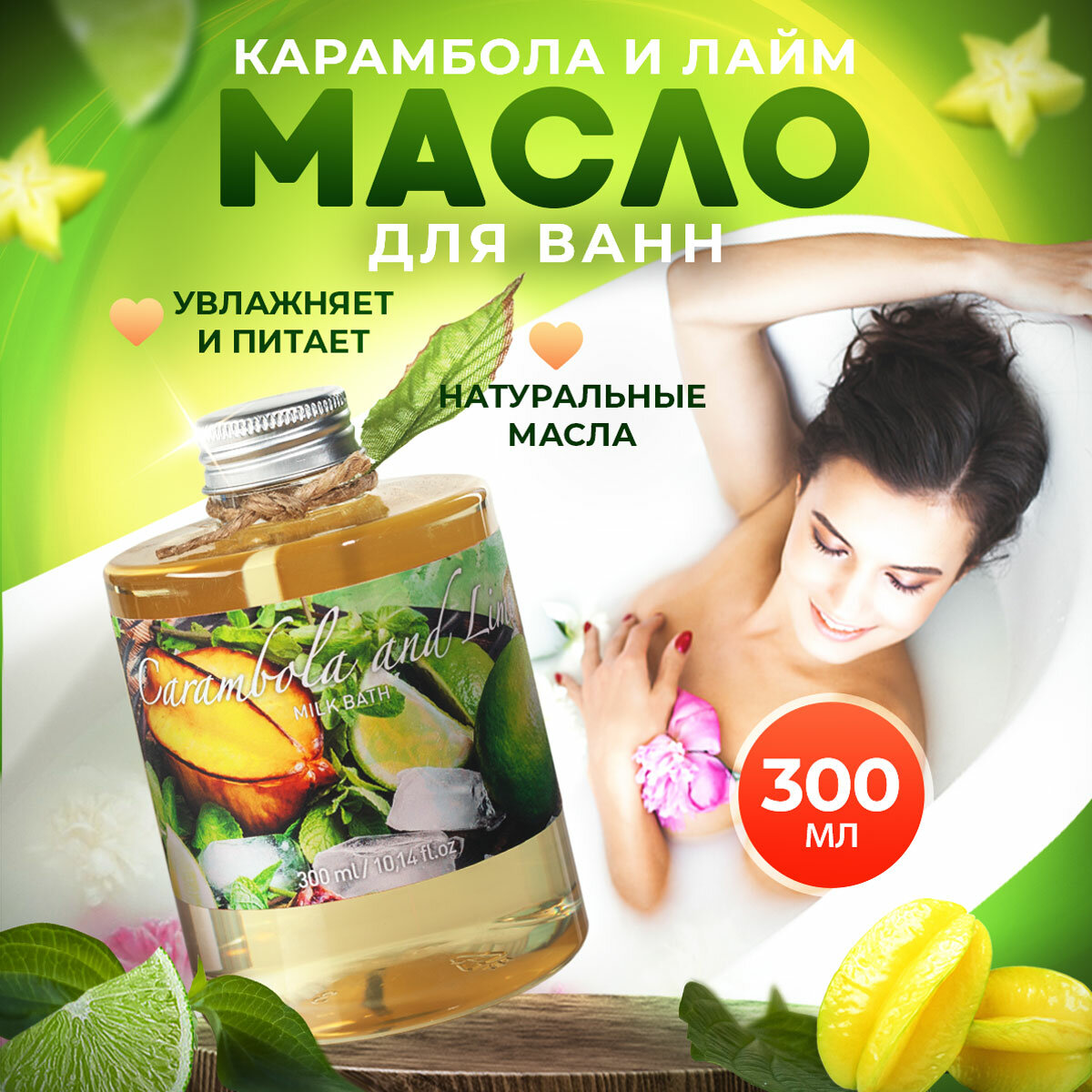 После насыщенного трудового дня позвольте себе на несколько минут расслабиться, погрузившись в обволакивающую нежным ароматом цитруса молочную ванну. Действие молочной ванны поможет вам отдохнуть и настроиться на спокойный лад. Ванну лучше всего принимать перед сном, она расширит кровеносные сосуды, полностью расслабит уставшие мышцы и подготовит ваше тело ко сну. Это не классическая пена для ванны, средство для принятия ванны состоит из натуральных масел, которые имеют свойство полностью смешиваться с водой, имеет потрясающий аромат, прекрасно увлажняет и питает кожу. Молочко для ванн способствует смягчению и очищению, повышению упругости. Кожа становится нежной, напитанной, гладкой и бархатистой. Используйте вместо пены и соли для купания перед сном. Профессиональное молоко для ванны содержит масла зародышей пшеницы, масло миндаля, жожоба, авокадо, макадамии и витамин Е, экстракты и концентраты, которые помогают поддерживать фигуру в подтянутом виде. Эфирные масла дарят приятный аромат, способствуют релаксу. Витаминно-минеральный коктейль в сочетании с молочными протеинами стимулирует процессы регенерации клеток кожи, повышает эластичность, выравнивает цвет. Натуральные жирные масла в составе молочной ванны оказывают благотворное воздействие на кожу тела, напитывая ее полезными веществами, увлажняя и активизируя регенерационные процессы в клетках. Миндальное масло - это традиционное средство для поддержания женской красоты и молодости кожи. Богатый минеральный состав масла миндаля обогащает кожу витаминами - ниацином, рибофлавином - и микроэлементами - цинком, магнием, калием. Это настоящая витаминная бомба! Масло жожоба успокаивает, снимает раздражения и покраснения. Масло зародышей пшеницы нормализует обменные процессы в клетках и улучшает внешний вид кожи. Масло авокадо способно преобразить кожу. Избавляет от сухости и хорошо защищает от ультрафиолета. Масло макадамии поразительно быстро впитывается кожей и служит проводником для полезных веществ из других ингредиентов ванны. В ассортименте представлен флакон 300 мл, чуть меньше 1 литра (700 мл) и канистра 5 литров. Расход на стандартную ванночку 50 мл. Масла для ванн выпускаются ароматизированными в ароматах: Ананас, Манго, Инжир, Арбуз, Лотос, Мангостин, Кокос, Лемонграсс, Цитрус (Карамбола и Лайм), Смородина. Если вы любите применять такие средства для ванн как бомбочки для ванны, бурлящий шар, шарики для ванн, пена для ванны, магниевая морская соль для ванны, шиммер для ванн, английская соль для ванны, крымская соль для ванн, то и молочная ванна вам точно понравится! Флакон масла для ванн станет идеальным подарком для взрослых женщин и мужчин, парней и девушек подростков. Такой презент можно преподнести подруге, маме, любимой, сестре, бабушке. Увлажняющее средство подойдет не только для тела, но и для рук и ног, оно может использоваться для женщин и девочек, для беременных для детей, для младнецев и новороженных - это универсальное средство для всей семьи. У нас есть акции и распродажи, вы можете купить наши товары набором в подарок со скидкой.