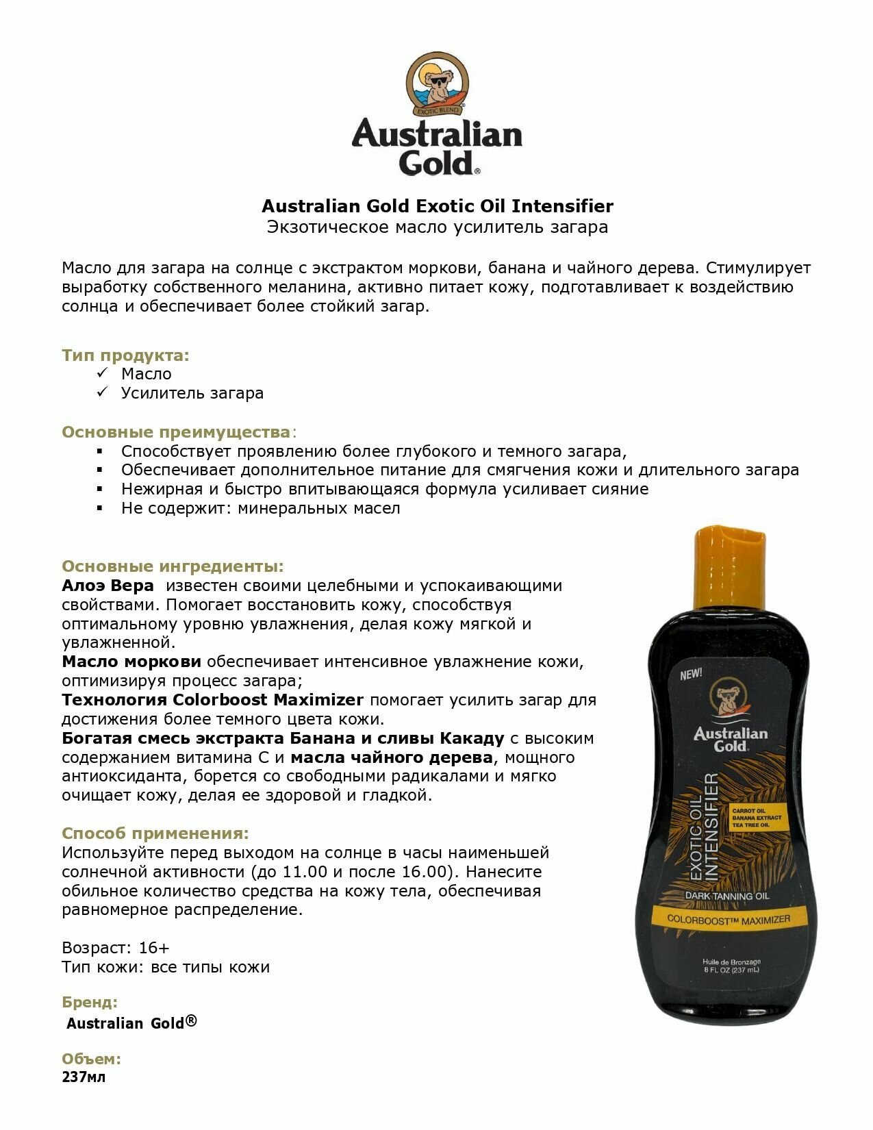 Масло для загара Australian Gold «Exotic Oil», для всех типов кожи, без красителей, 237мл: сравнение цен, характеристики, фото, актуальное наличие и цены.