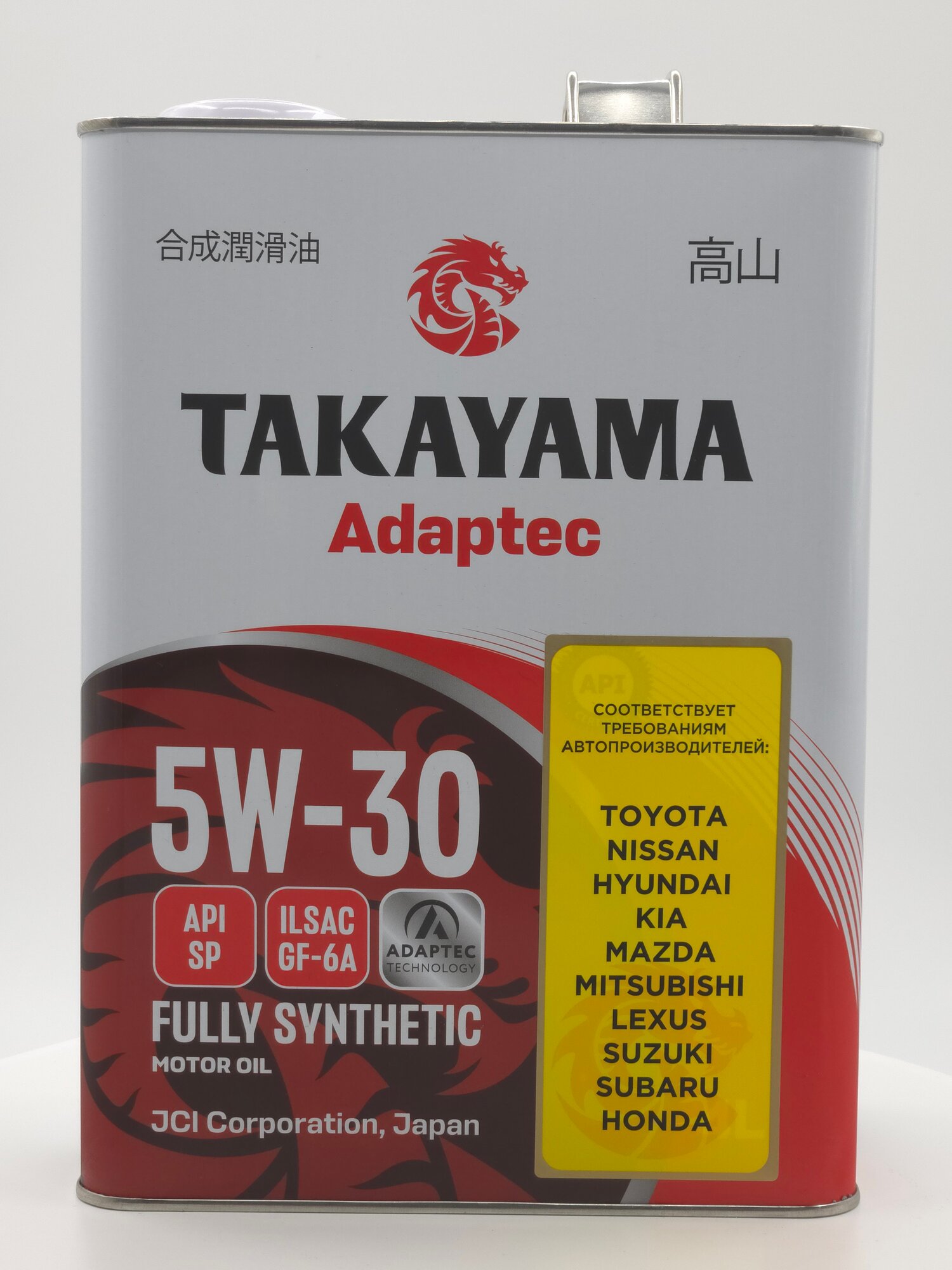 Масло моторное синтетическое TAKAYAMA Adaptec SAE 5W-30 API SP ILSAC GF-6A, канистра 4 литра