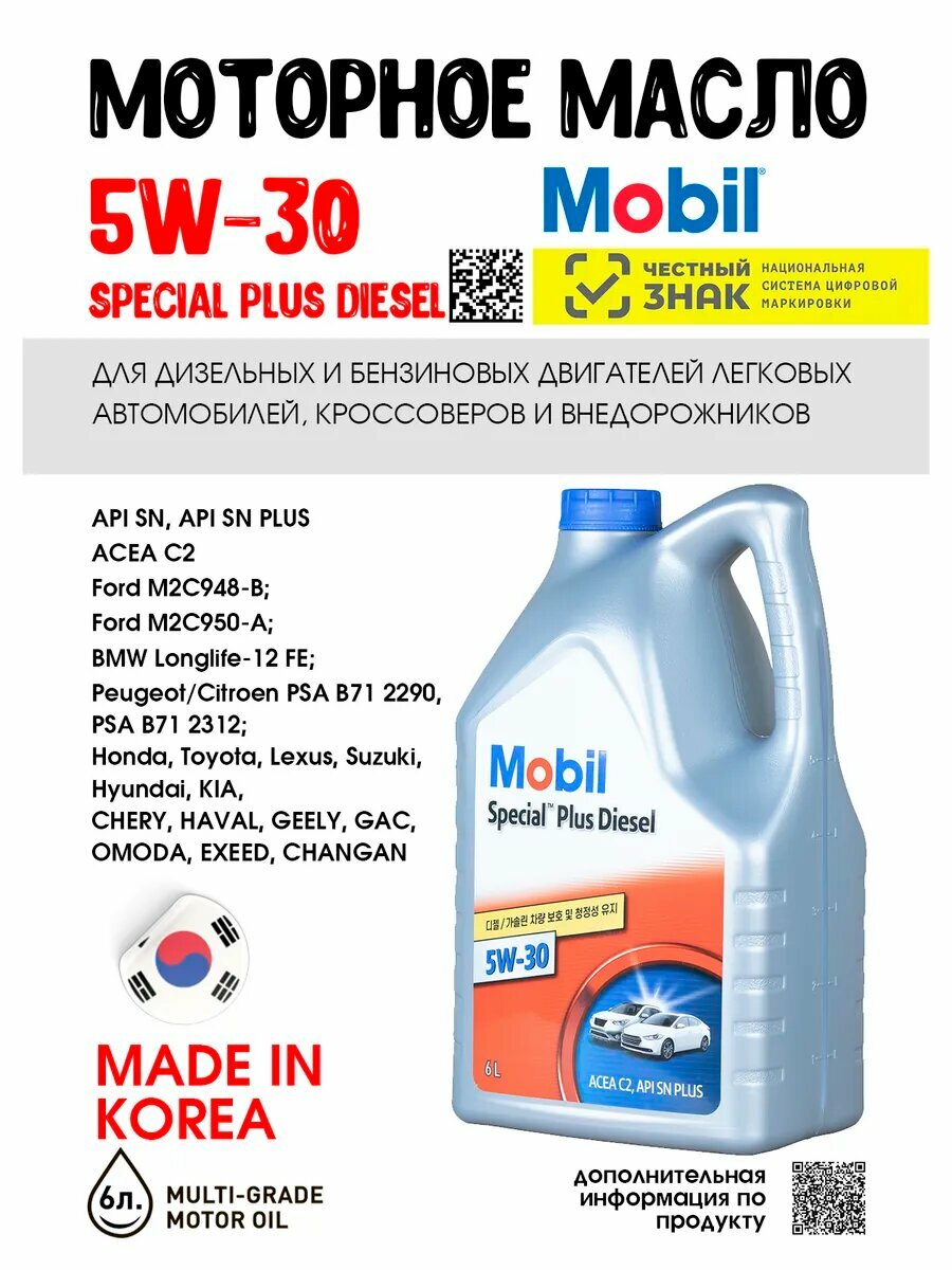 Купить Масло моторное Mobil 5W-30 SPECIAL PLUS DIESEL 6л с доставкой по всей России. Масло моторное Mobil 5W-30 SPECIAL PLUS DIESEL 6л: сравнение цен, характеристики, фото, актуальное наличие и цены.