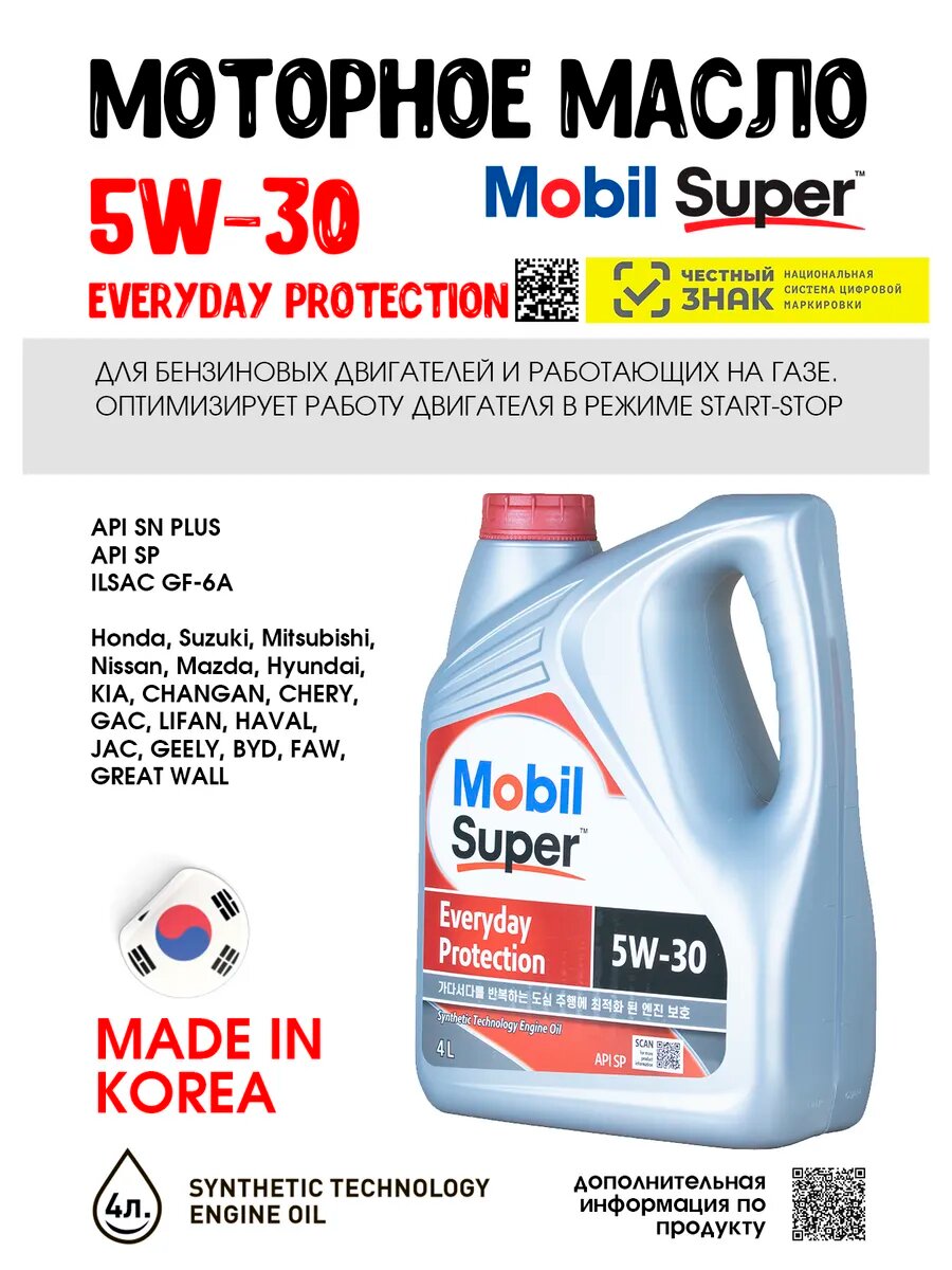 Купить Масло моторное Mobil 5W-30, SUPER EVERYDAY PROTECTION, 4л с доставкой по всей России. Масло моторное Mobil 5W-30, SUPER EVERYDAY PROTECTION, 4л: сравнение цен, характеристики, фото, актуальное наличие и цены.