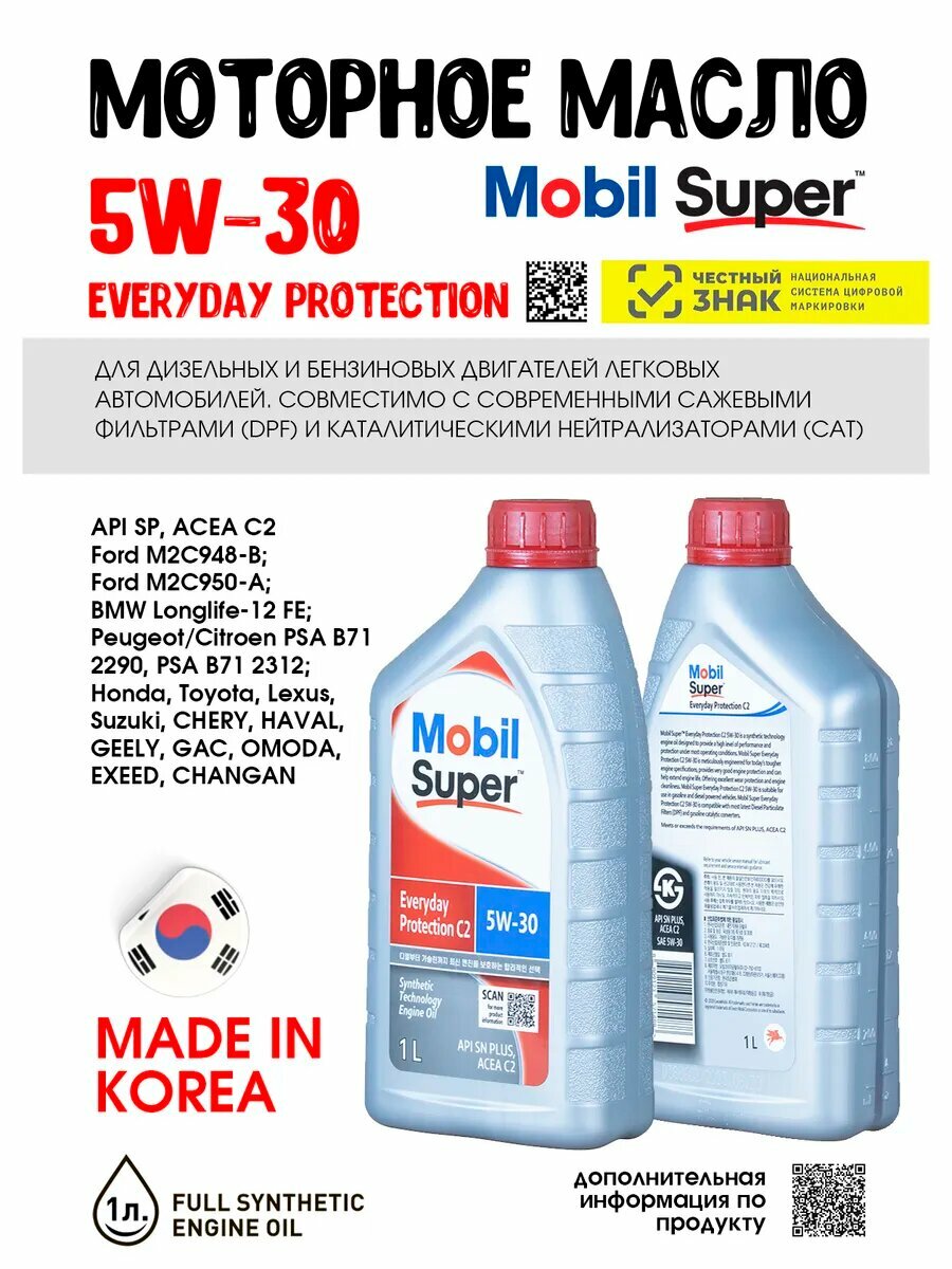 Купить Масло моторное Mobil 5W-30, SUPER EVERYDAY PROTECTION C2, 1л с доставкой по всей России. Масло моторное Mobil 5W-30, SUPER EVERYDAY PROTECTION C2, 1л: сравнение цен, характеристики, фото, актуальное наличие и цены.
