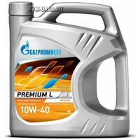 Масло моторное полусинтетическое Gazpromneft Premium L 10W-40 всесезонное универсальное . Моторное масло Gazpromneft Premium L 10W-40 производится с использованием высококачественных базовых масел и сбалансированного пакета присадок. Благодаря использованию улучшенных базовых масел моторное масло обладает: увеличенным сроком службы, сниженным расходом масла на угар и улучшенными антикоррозионными свойствами. Одобрения/соответствия: API SL/CF; ACEA A3/B4; ACEA A3/B3; MB 229.1; ПАО «автоваз»; Сертифицировано ААИ. Преимущества. Благодаря эффективному сочетанию высококачественных базовых масел и импортного пакета присадок обеспечивают надежную защиту двигателя от износа как при холодном пуске, так и в различных режимах эксплуатации; Высокие моюще-диспергирующие свойства масел обеспечивают повышенную чистоту двигателя, стойкость к образованию отложений всех типов; Соответствуют всем параметрам современных требований API SL/CF, включая требования по расходу масла, испаряемости, отложениям и чистоте цилиндро-поршневой группы. Применение. В бензиновых и дизельных двигателях легковых автомобилей, легких грузовиков и микроавтобусов (с турбонаддувом и без), где рекомендованы смазочные материалы эксплуатационного класса API SL/CF (или более ранних спецификаций) и соответствующего класса вязкости SAE. Характеристики: . Вязкость кинематическая при 100°С, мм²/с: 14,4 Вязкость кинематическая при 40°С, мм²/с: 98,3 Индекс вязкости: 151 Температура вспышки, °С: 229 Температура застывания, °С: -39 Щелочное число, мг KOH/г: 9,0 Плотность при 20°С, г/см³: 0,873 Зольность сульфатная, %: 1,3