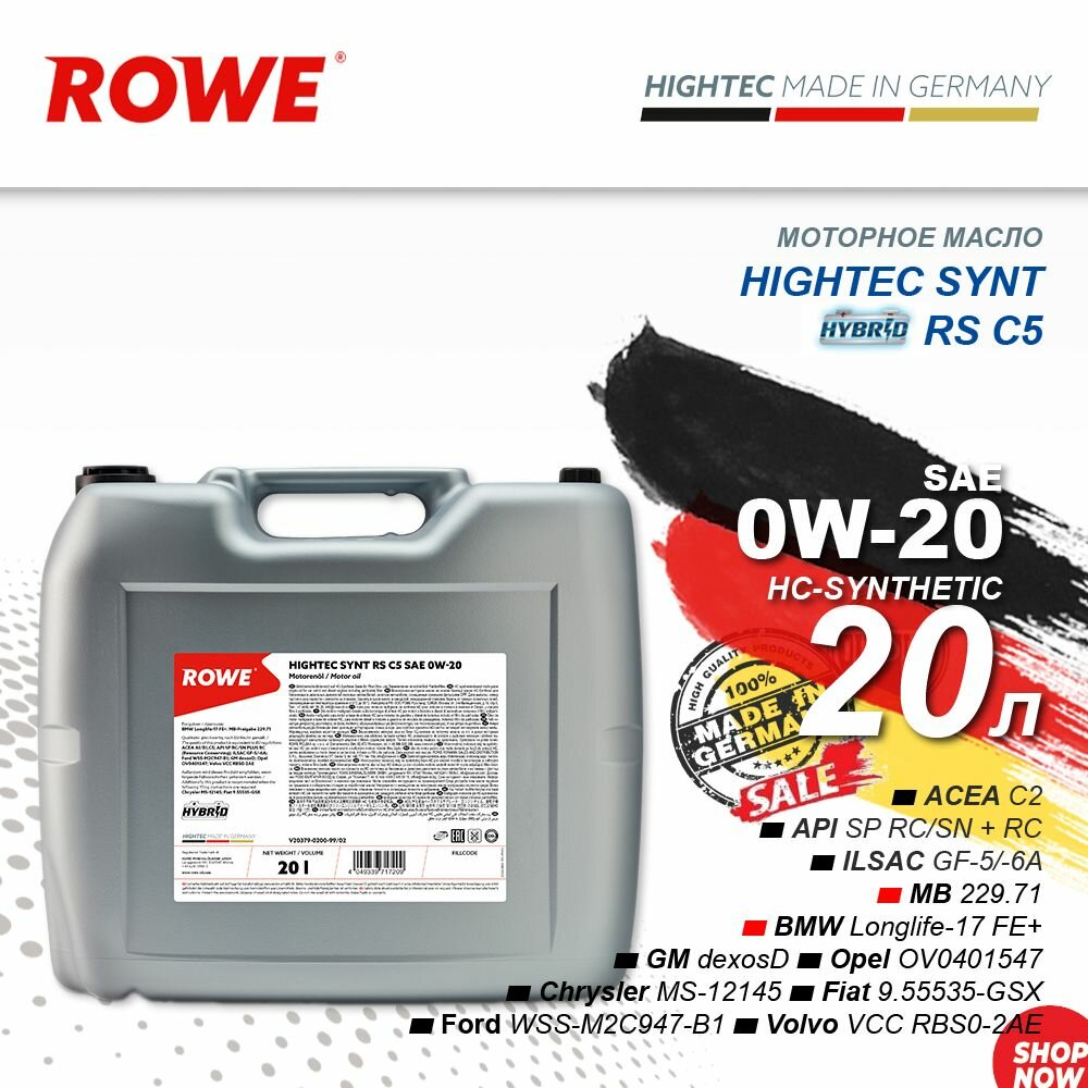 Мультисинтетическое (РАО+НС) моторное масло премиум-класса. BMW Longlife-17 FE+ Jaguar Land Rover STJLR 03.5006 MB-Freigabe 229.71/229.72 Opel/Vauxhall OV0401547 API SP RC/SN PLUS RC (Resource Conserving) - ILSAC GF-5/-6A - Volvo VCC RBS0-2AE - ACEA A1/B1,C5,C6 - Ford WSS-M2C947-B1/M2C962-A1 - GM dexosD Chrysler MS-12145 - Fiat 9.55535-GSX/DSX - Ford WSS-M2C947-A