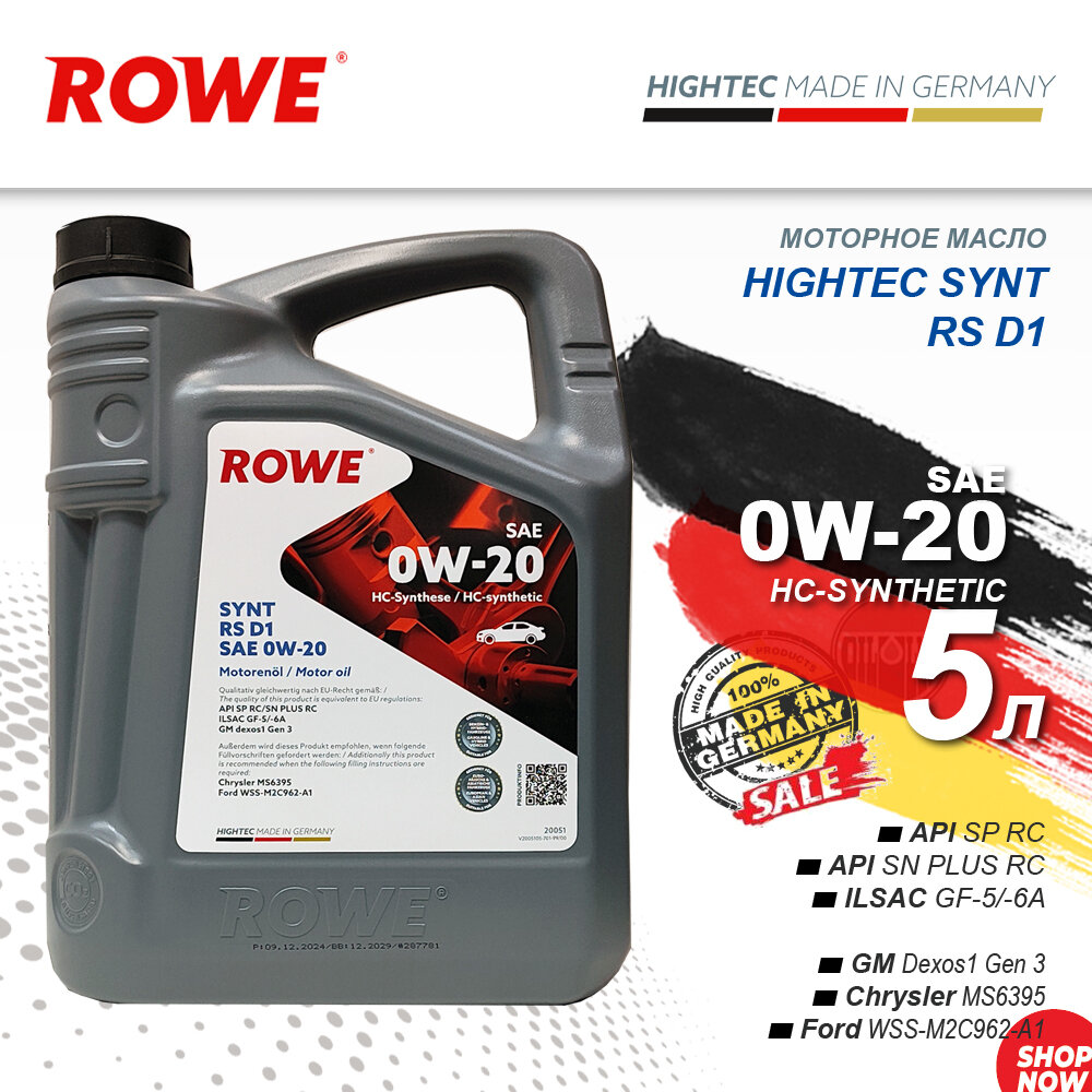 Купить Масло моторное ROWE HIGHTEC SYNT RS D1 SAE 0W-20 (5 л) с доставкой по всей России. Масло моторное ROWE HIGHTEC SYNT RS D1 SAE 0W-20 (5 л): сравнение цен, характеристики, фото, актуальное наличие и цены.