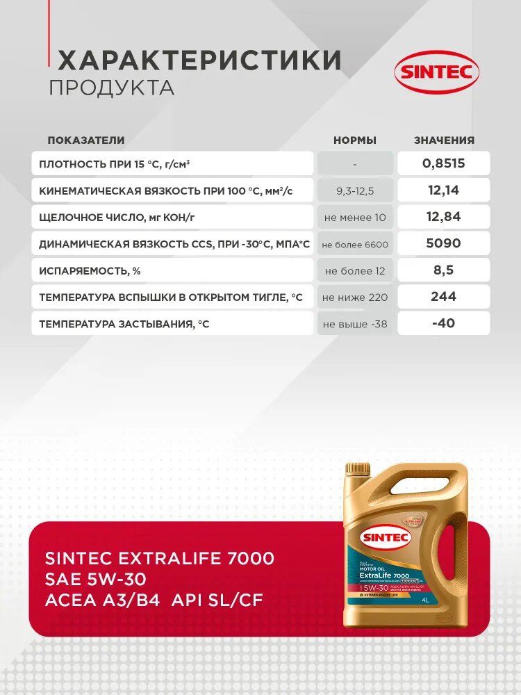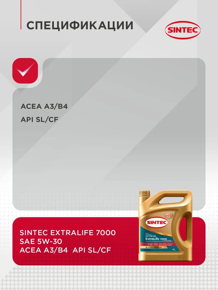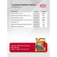 Масло моторное Sintec ExtraLife 7000 Fully Synthetic SAE: 5W-30 API: SL/CF ACEA: A3/B4 4 L: сравнение цен, характеристики, фото, актуальное наличие и цены.