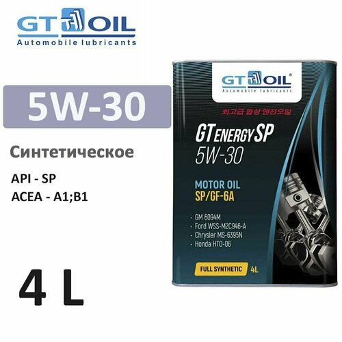 Купить Масло моторное синтетическое GT Energy SP 5W30 API SP ACEA A1/B1 ILSAC GF-6 4л GT OIL 8809059409152 с доставкой по всей России. Масло моторное синтетическое GT Energy SP 5W30 API SP ACEA A1/B1 ILSAC GF-6 4л GT OIL 8809059409152: сравнение цен, характеристики, фото, актуальное наличие и цены.