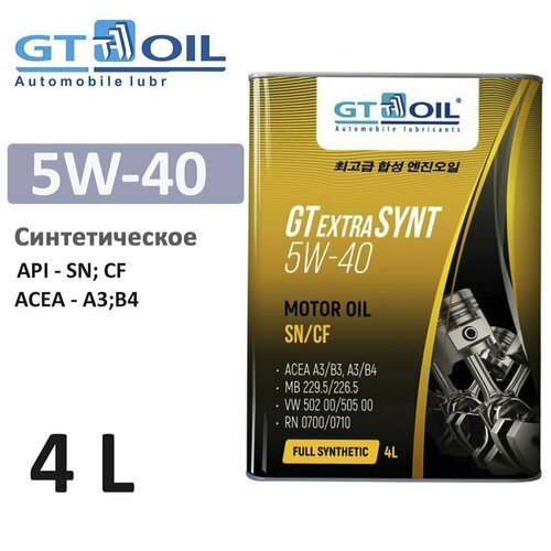 Масло моторное синтетическое GT Extra Synt 5W40 API SN/CF ACEA A3/B4 4л GT OIL 8809059407417: сравнение цен, характеристики, фото, актуальное наличие и цены.