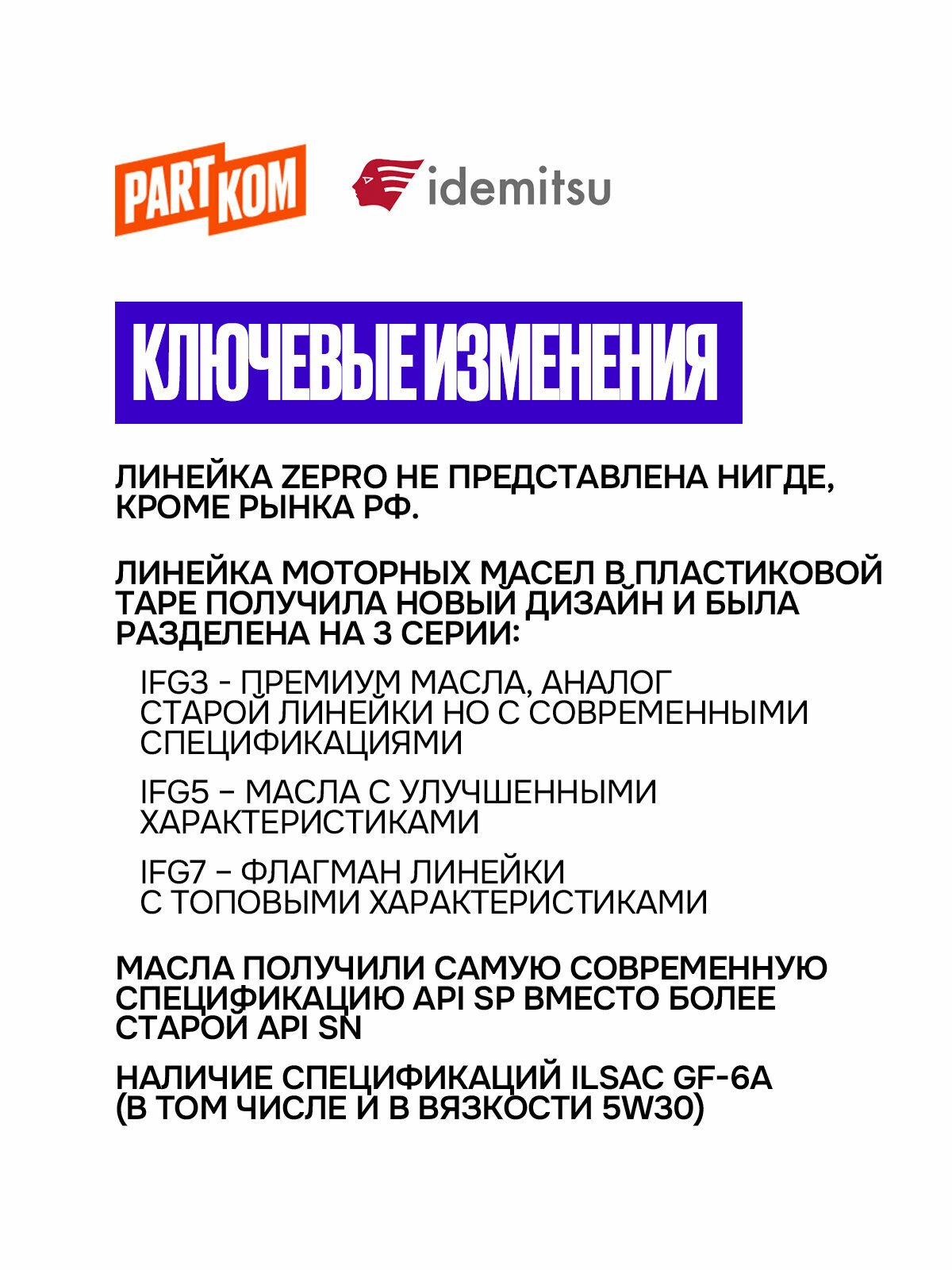 Масло моторное синтетическое IFG3 5W40 API SP 4л, IDEMITSU TII10105841: сравнение цен, характеристики, фото, актуальное наличие и цены.