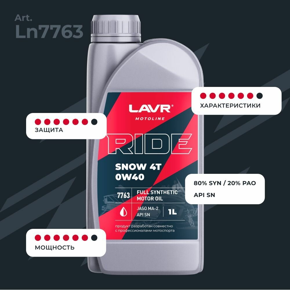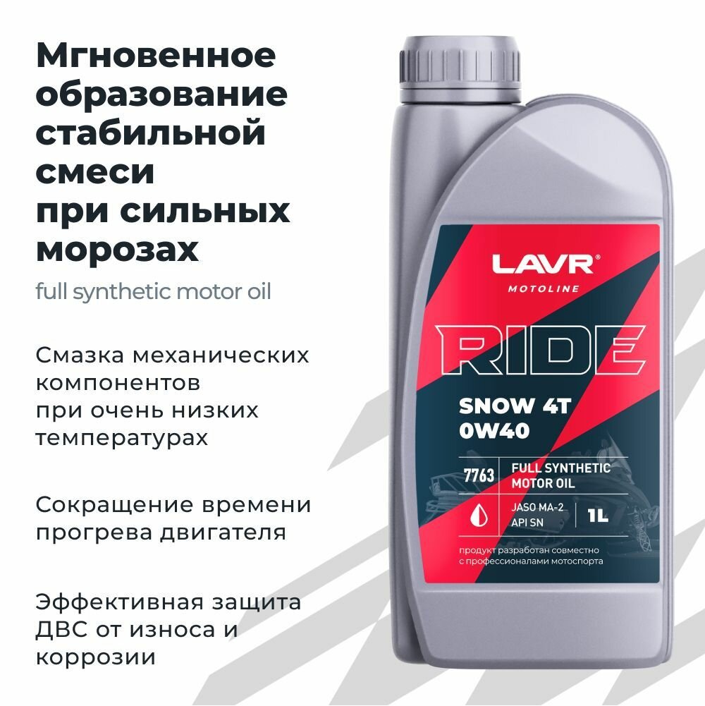Масло моторное синтетическое LAVR RIDE SNOW 4T 0W40 SN 1 л для снегохода, для квадроцикла: сравнение цен, характеристики, фото, актуальное наличие и цены.
