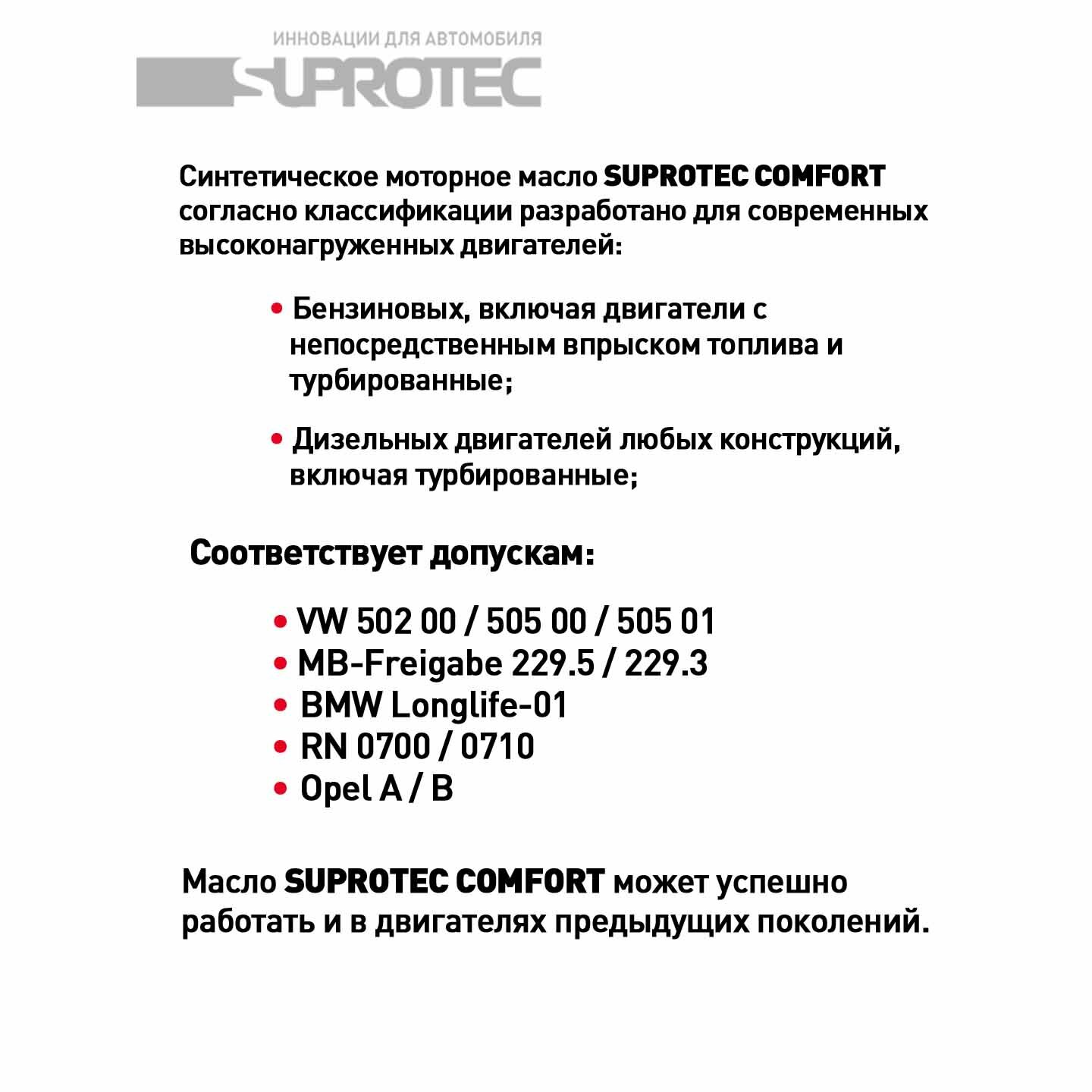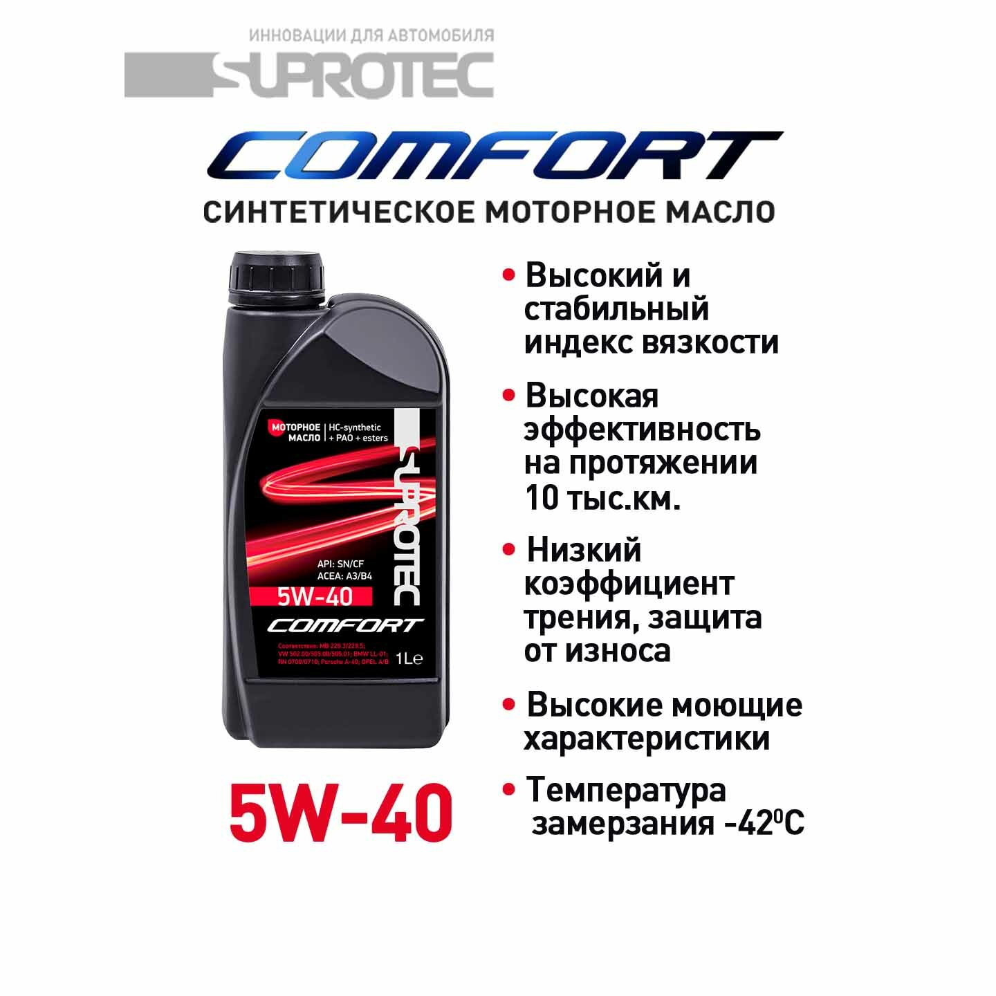 Купить Моторное масло Suprotec Comfort 5w40 1L 124374 с доставкой по всей России.