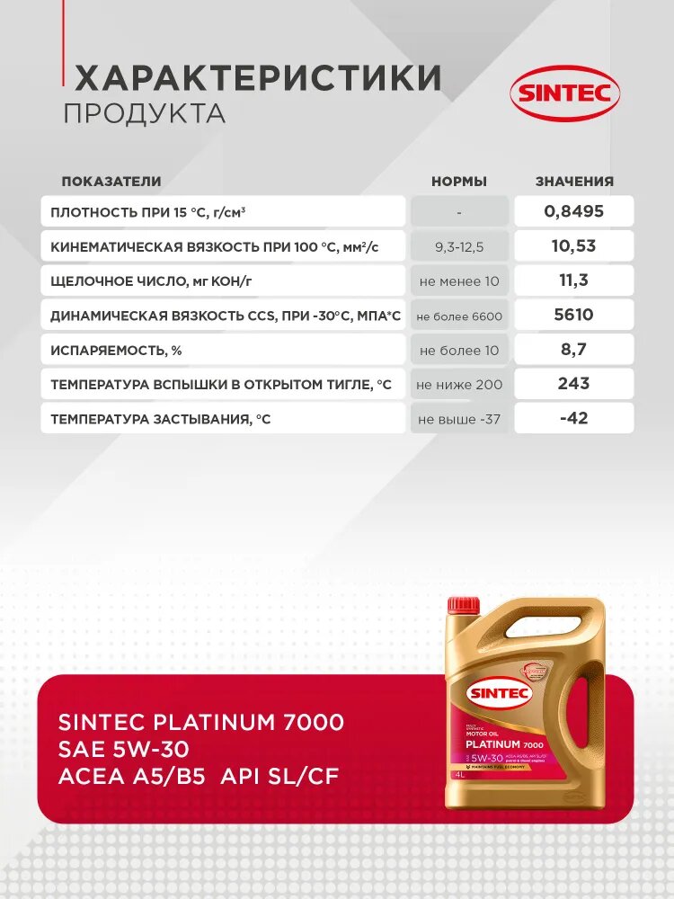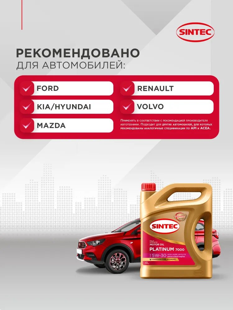 Масло моторное синтетическое Sintec Platinum 7000 SAE 5W-30 ACEA A5/B5 5 Л: сравнение цен, характеристики, фото, актуальное наличие и цены.