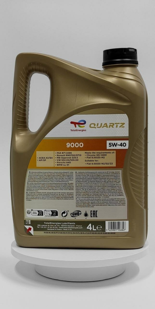 Масло Total Quartz 9000 5w40 соответствует стандартам качества А3/B4, что гарантирует его высокую эффективность и долговечность. Это масло подходит для использования в бензиновых и дизельных двигателях, обеспечивая их надежную работу и защиту от износа.