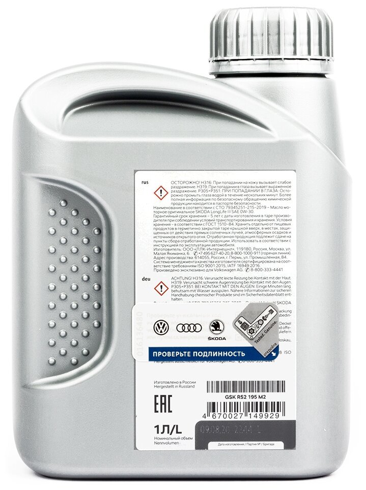 Масло моторное VAG Longlife3 SKODA 0W30 синтетическое 1 л G SKR52195M2 VAG GSKR52195M2: сравнение цен, характеристики, фото, актуальное наличие и цены.