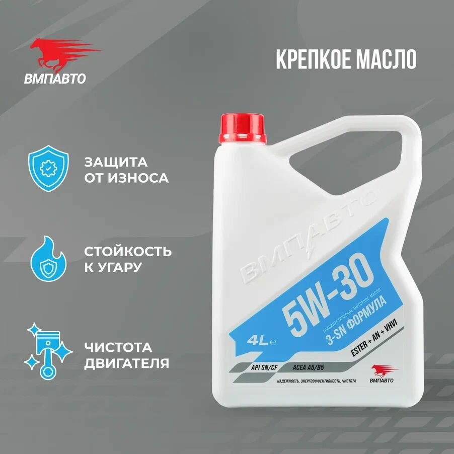SN-пакет присадок, разработанный ВМПАВТО обеспечивает защиту двигателя от износа, стабильные характеристики масла и чистоту деталей двигателя - всего через три замены двигатель будет очищен от лаковых отложений.