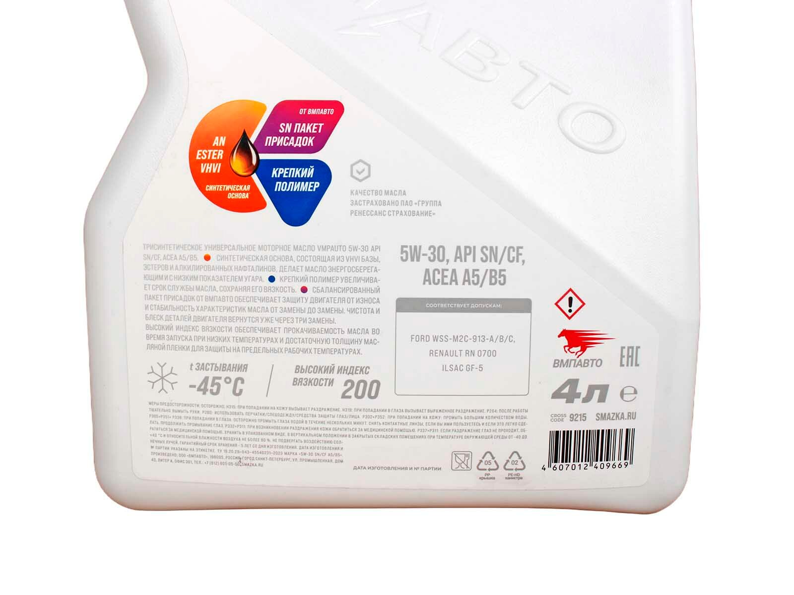 Купить Масло моторное ВМПАВТО 3-SN 5W30 A5/B5 4л с доставкой по всей России. Масло моторное ВМПАВТО 3-SN 5W30 A5/B5 4л: сравнение цен, характеристики, фото, актуальное наличие и цены.