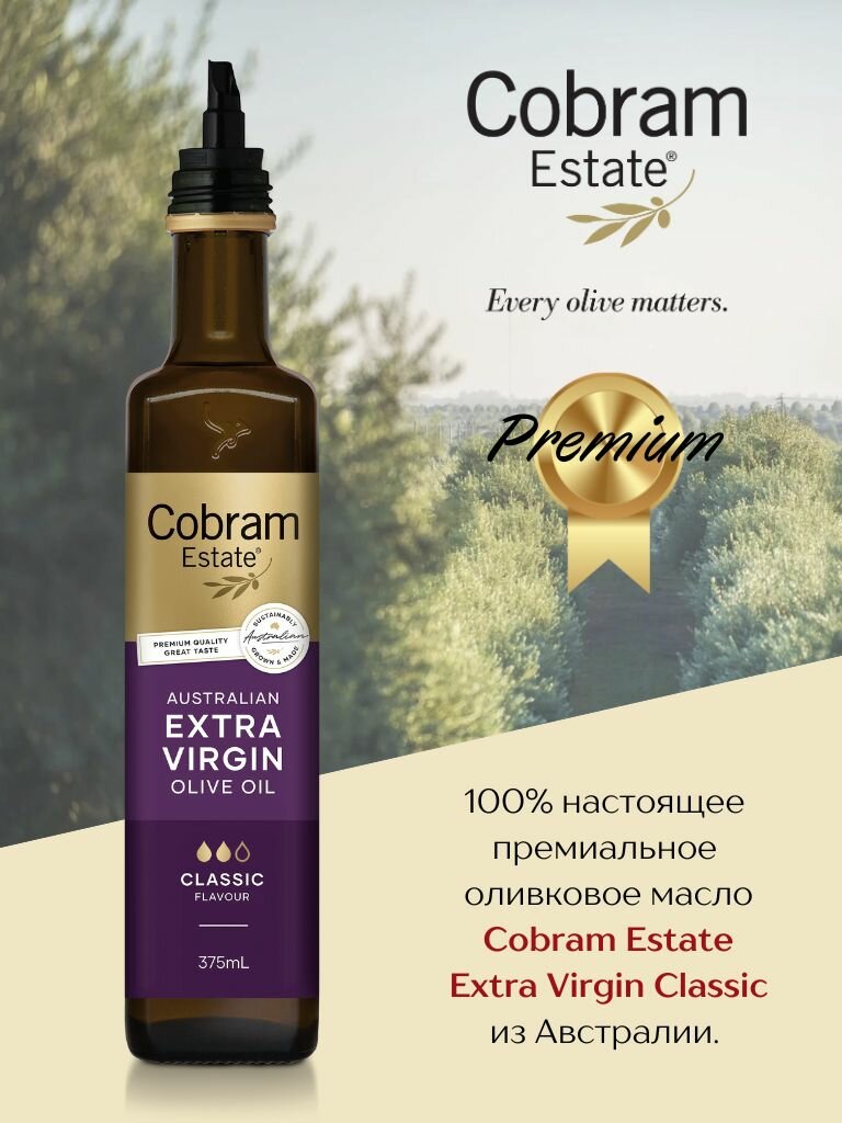 Изготовлено в Австралии крупнейшим производителем оливковых масел премиум-класса. Компания Cobram Estate занимается всем циклом производства - от посадки оливковых деревьев и сбора урожая до отжима и розлива, чтобы гарантировать высшее качество продукта.