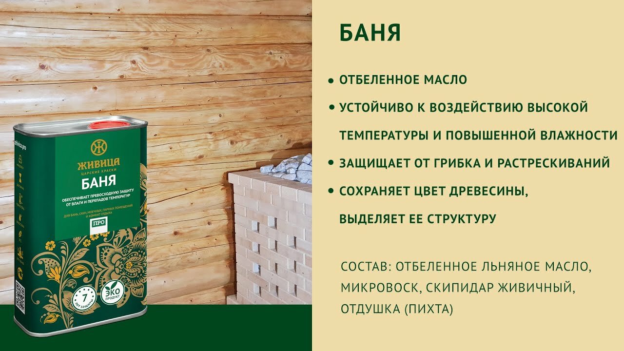 Масло "Баня про" - это самостоятельное покрытие любых деревянных поверхностей в помещениях с повышенной влажностью и температурой.