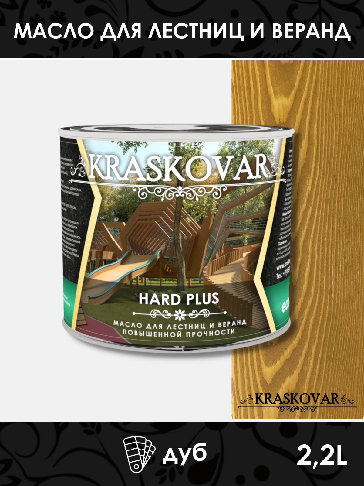 Масло повышенной прочности для лестниц и веранд Kraskovar Hard Plus дуб 2,2л: сравнение цен, характеристики, фото, актуальное наличие и цены.