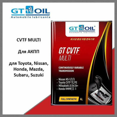 GT CVTF Multi – полностью синтетическое масло, специально разработанное для большинства автоматических коробок передач с плавно изменяемым передаточным числом (CVT).