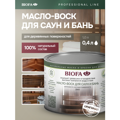 Масло-воск BIOFA 2065 — это профессиональное масло для дерева для бани и сауны, разработанное специально для защиты деревянных поверхностей в условиях высокой температуры и влажности. Подходит для пропитки для бани и сауны внутри, для обработки полков, стен, потолков, а также банных аксессуаров и утвари из древесины. Масло идеально работает в саунах и банях для обработки парной с разными режимами эксплуатации, предотвращая от разрушения древесину и облегчая уход за ней. Преимущества — Натуральный состав из сырья природного происхождения, безопасен для здоровья и экологии. — Не содержит биоцидов — обработанная поверхность безопасна при контакте с кожей. — Водо- и грязеотталкивающий эффект, антистатические свойства. — Высокая концентрация твердых восков — повышенная износостойкость и приятная тактильность. — Поверхность не липкая, легко очищается от брызг и следов веников. — Не шелушится, не отслаивается и не растрескивается со временем. — Обновление без перешлифовки — достаточно нанести один новый слой. Область применения — Масло-воск для полков в бане — Воск для парной — Стены и потолки в саунах и банях — Парные с разными режимами температуры и влажности — Банные аксессуары и утварь — Любые деревянные поверхности внутри парной Цвет и внешний вид — Бесцветное покрытие — Подходит для получения лессирующих и укрывистых оттенков Подготовка и нанесение — Поверхность должна быть сухой и чистой, допустимая влажность древесины — не более 12%. — Перед нанесением древесину рекомендуется отшлифовать абразивом P120–P150. — При наличии смоляных карманов смолу необходимо удалить. — Перед работой продукт тщательно перемешать. Нанесение: — Наносить кистью или мягкой безворсовой тканью тонким равномерным слоем вдоль волокон. — Рекомендуемое количество слоев — 2. — Межслойная шлифовка абразивом P500–P600 улучшает тактильность и декоративный эффект. — Второй слой наносится аналогично первому. Расход и высыхание: — 1 слой: ~1 л на 16 м² — 2 слоя: ~1 л на 10 м² — Время высыхания между слоями: 16–24 часа
