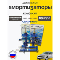 Стойки передней подвески 2шт ( левая и правая) и амортизаторы задние 2шт . Применяемость : ВАЗ 2170-2172 приора. Производитель : Демфи (Россия) . Серия «Комфорт» - наиболее комфортные из линейки Демфи, надёжные гидравлические и газонаполненные стойки с повышенными характеристиками долговечности. . Приемлемый по цене вариант для большинства водителей. За счёт увеличенного усилия отбоя дают ощущение плотно собранной, энергоёмкой подвески для умеренно скоростной езды по городским и загородным дорогам. Стойки и амортизаторы серии «Комфорт» («жесткость» на 10% выше, чем у серийных заводских) специально адаптированы для российских дорог, с целью улучшения управляемости автомобиля.