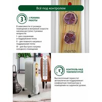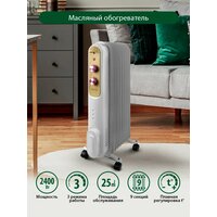 9 секций, Максимальная мощность: 2400 Ватт Размер секций: 110x580 мм, Регулируемый термостат, 3 режима мощности, Система защиты от перегрева, Поворотные колесики и встроенная ручка для удобного перемещения, Световой индикатор работы, Отделение для хранения шнура