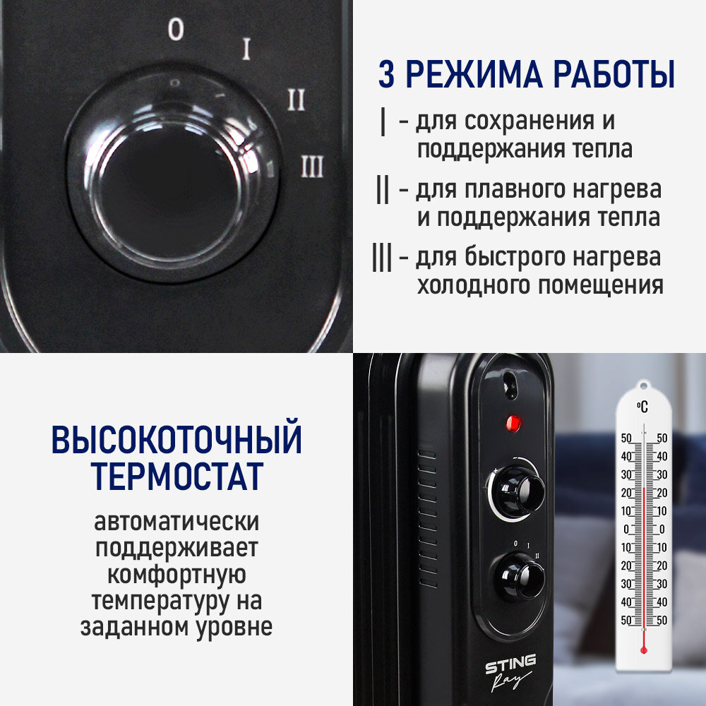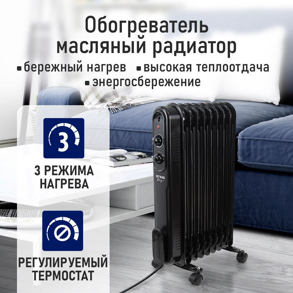 Масляный обогреватель STINGRAY ST-OH1003A, 9 секций, мощность 2500Вт, черный: сравнение цен, характеристики, фото, актуальное наличие и цены.