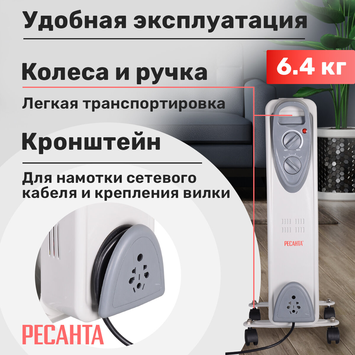 Масляный радиатор отопления Ресанта ОМ- 9Н: Эффективное обогревательное решение для вашего дома Ищете надежное и эффективное устройство для обогрева вашего помещения? Масляный радиатор отопления Ресанта ОМ- 9Н - идеальный выбор для тех, кто ценит комфорт и экономичность в отопительном сезоне. Основные характеристики: Мощность: Этот масляный обогреватель имеет 2000 Вт мощности, обеспечивая быстрый и равномерный нагрев ваших помещений. 9 секций: Ресанта ОМ- 9Н оснащен 9 секциями, что позволяет равномерно распределять тепло по комнате, идеально подходит для помещений площадью до 25 м². Встроенный термостат: Встроенный термостат обеспечивает автоматическое поддержание желаемой температуры в комнате, что делает использование обогревателя удобным и экономичным. Преимущества масляного радиатора Ресанта: Безопасность: Масляные радиаторы отопления известны своей безопасностью. Они не перегреваются и не сушат воздух, что делает их отличным выбором для семей с детьми и домашними животными. Портативность: Ресанта ОМ- 9Н легкий и компактный, что позволяет перемещать его из комнаты в комнату в зависимости от ваших потребностей в обогреве. Простота использования: Простой и интуитивно понятный дизайн обеспечивает легкость управления, а встроенные колесики облегчают перемещение. Экономичность: Благодаря встроенному термостату, масляный радиатор Ресанта эффективно использовать энергию, что способствует снижению счетов за электроэнергию. Если вы ищете надежное и экономичное решение для обогрева вашего дома или офиса, масляный радиатор Ресанта ОМ- 9Н - ваш идеальный выбор. Приобретите его сегодня и наслаждайтесь комфортным и теплым пространством в любое время года.