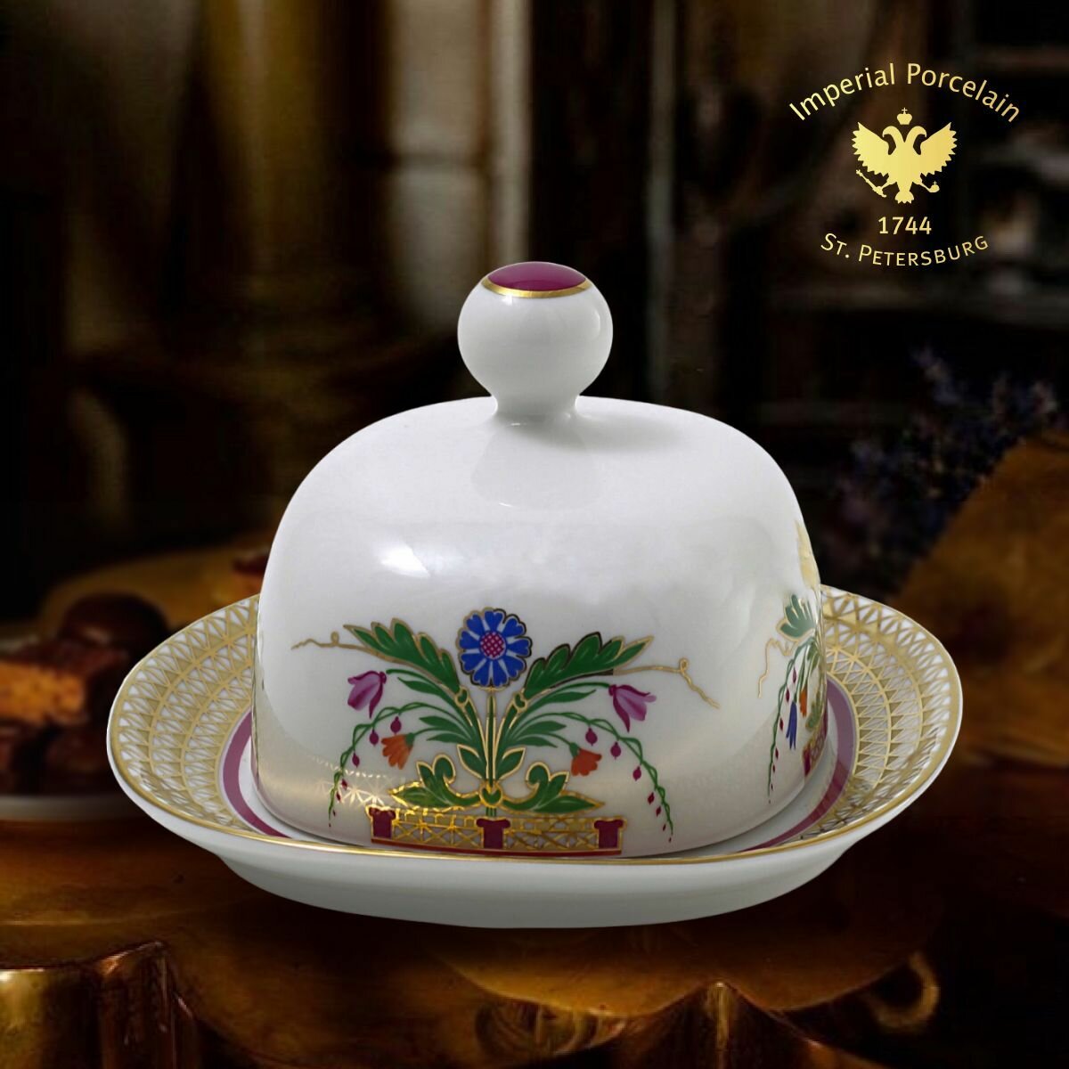 Купить Маслёнка. Форма «Прямоугольная», рисунок «Замоскворечье». Твердый фарфор. Императорский фарфоровый завод ИФЗ ЛФЗ. с доставкой по всей России.