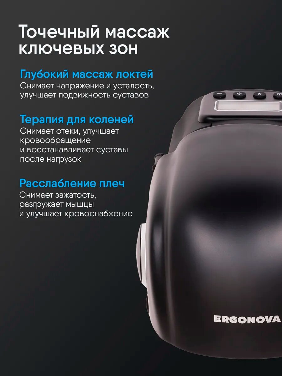Многофункциональный массажер для колен ERGONOVA MagicTouch Pro knee, локтей и плеч - идеальное решение при растяжениях, болях в суставах и мышцах. Массажер с трехступенчатым инфракрасным прогревом имеет три темпрературных режима, три массажных техники которые помогают привести в норму связки и мышцы после интенсивных тренировок. А воздушно компрессионный массаж с тремя уровнями интенсивности поможет вывести застоявшуюся лимфу. Вибромассаж прорабатывает глубокие ткани, что невозможно при ручном массаже. Режим вибрации эффективнее обезболивает, снимает воспаление и отек. Глубина воздействия массажера, которую не может обеспечить массажист.