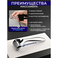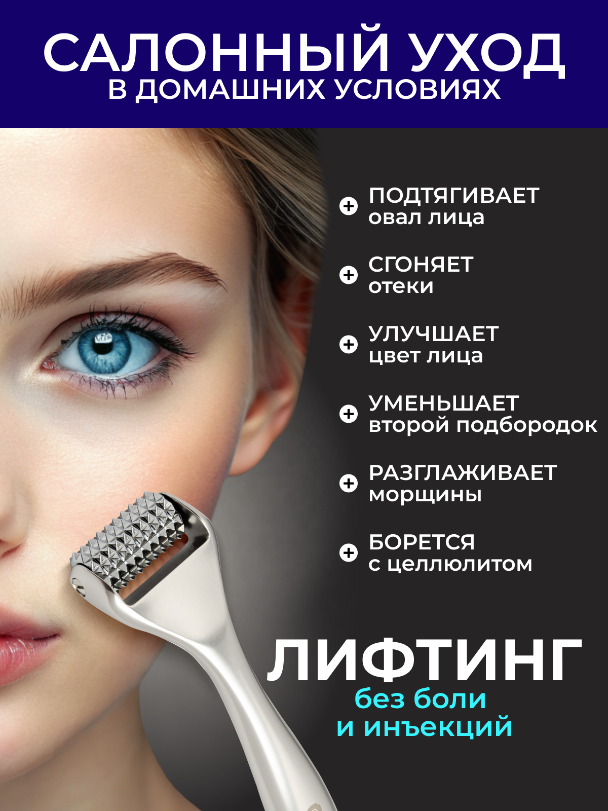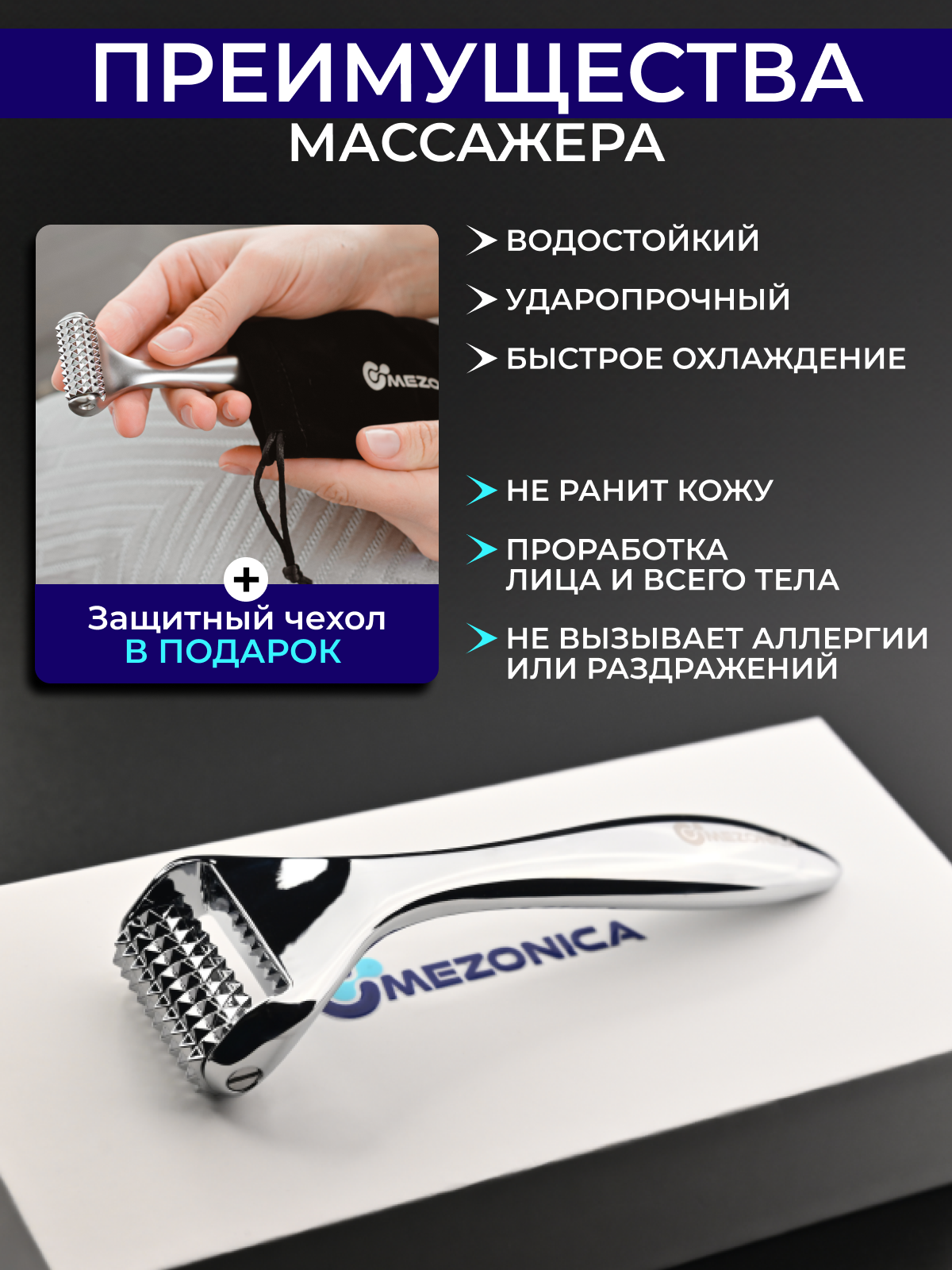 Mezonica Metal 3D Acupressure Skin beauty Roller Zinc Alloy Металлический 3D акупрессурный ролик (мезороллер / дермароллер) для массажа шиацу, ручной. Серебристый домашний ручной косметический массажер акупрессурный для массажа и лифтинга, омоложения кожи лица, подбородка, шеи и области декольте, тела. Эффект от использования: повышается эластичность кожи лица, запускается лимфа, ежедневно побеждаются недостатки и несовершенства кожи, улучшается впитывание косметических средств, лифтинг эффект. Многофункциональный инструмент подходит для любого типа кожи (сухой, нормальной, зрелой, возрастной, жирной, проблемной). Массажный валик дермороллер улучшает проникновение активных ингредиентов уходовых косметических средств в кожу, осветляет пигментацию, выравнивает цвет лица, способствует уменьшению и разглаживанию рубцов, шрамов и морщин, идеален для устранения второго подбородка.