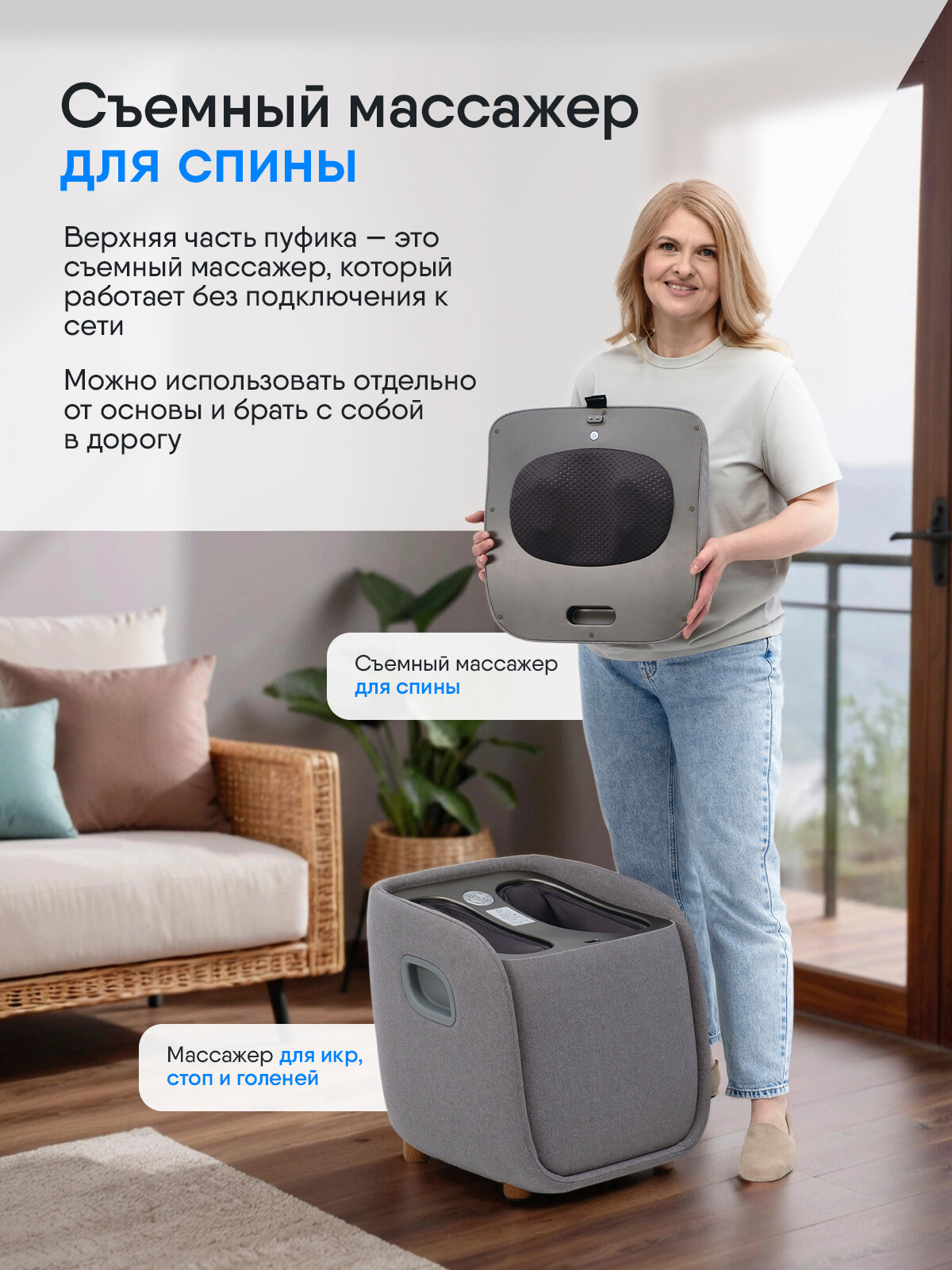 Купить Массажер для ног Ergonova MeTime Ottoman электрический с подогревом лимфодренажный компрессионный и подушка под поясницу с доставкой по всей России.