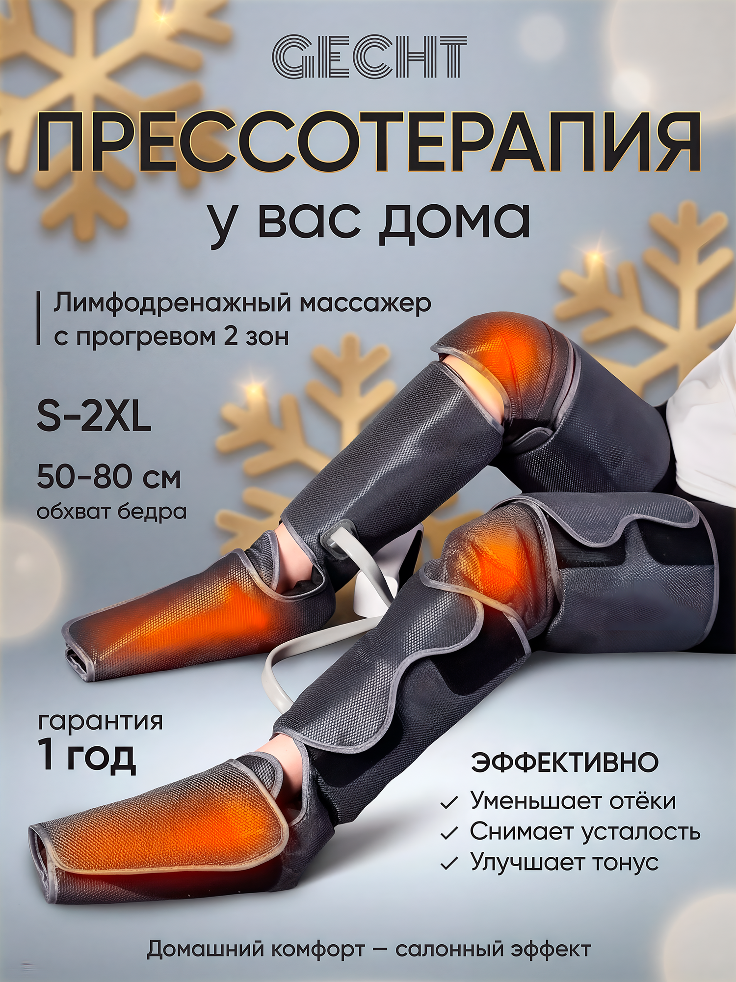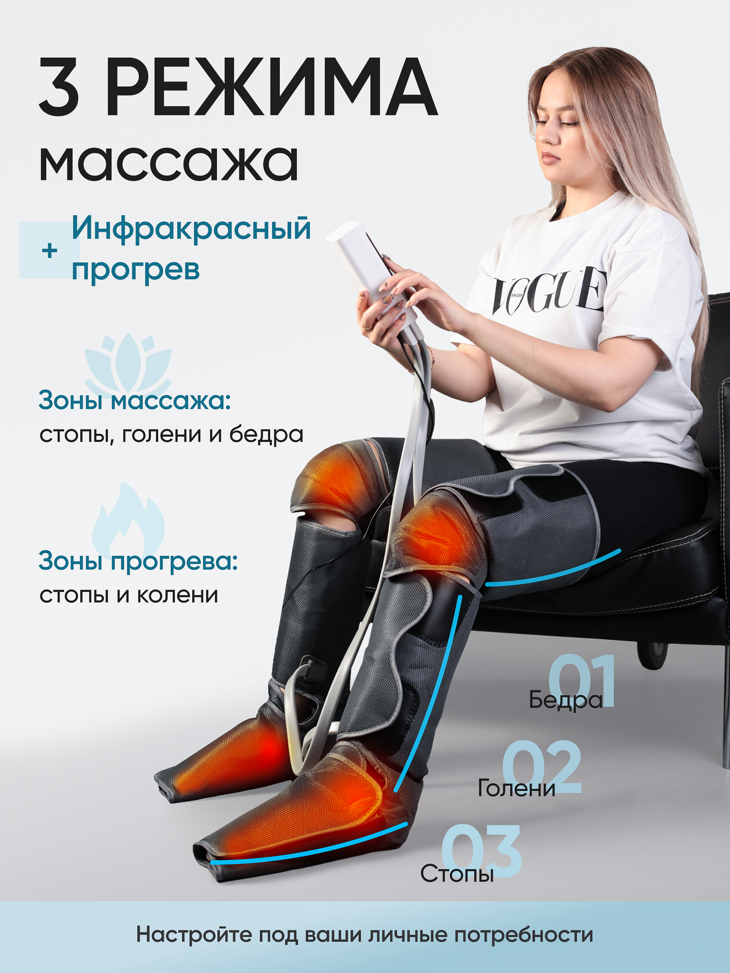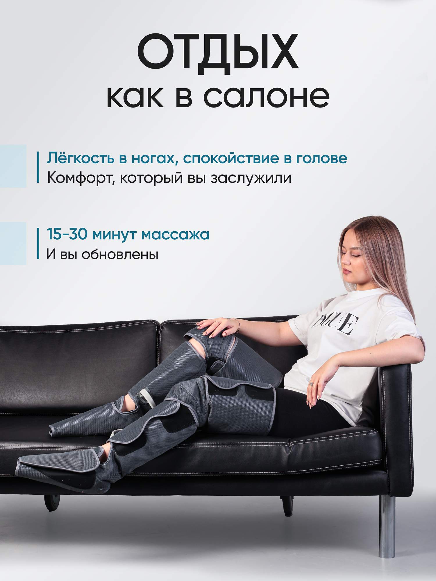 | Функции | автоотключение, лимфодренаж, подогрев, прессотерапия, регулировка интенсивности массажа |