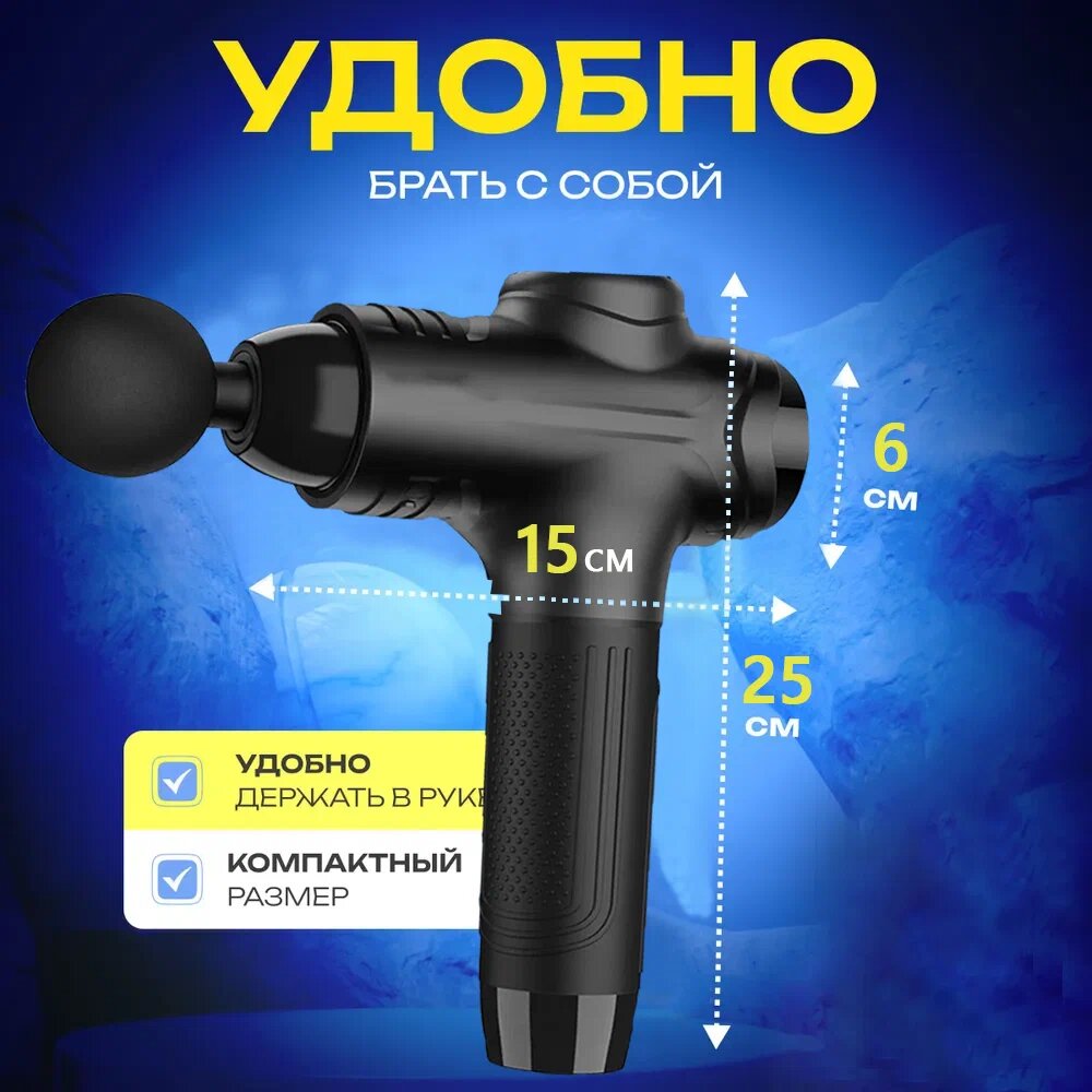 Перкуссионный массажер оснащен 8 сменными насадками и 10 режимами работы, что позволяет выбрать наиболее подходящий вариант для каждого пользователя. Массажер работает от литий-ионного аккумулятора емкостью 2500 мАч, обеспечивая его непрерывную работу в течение 3-5 часов. Благодаря функции автоотключения, массажер автоматически выключается через 10 минут непрерывной работы, делая его безопасным и удобным в использовании.