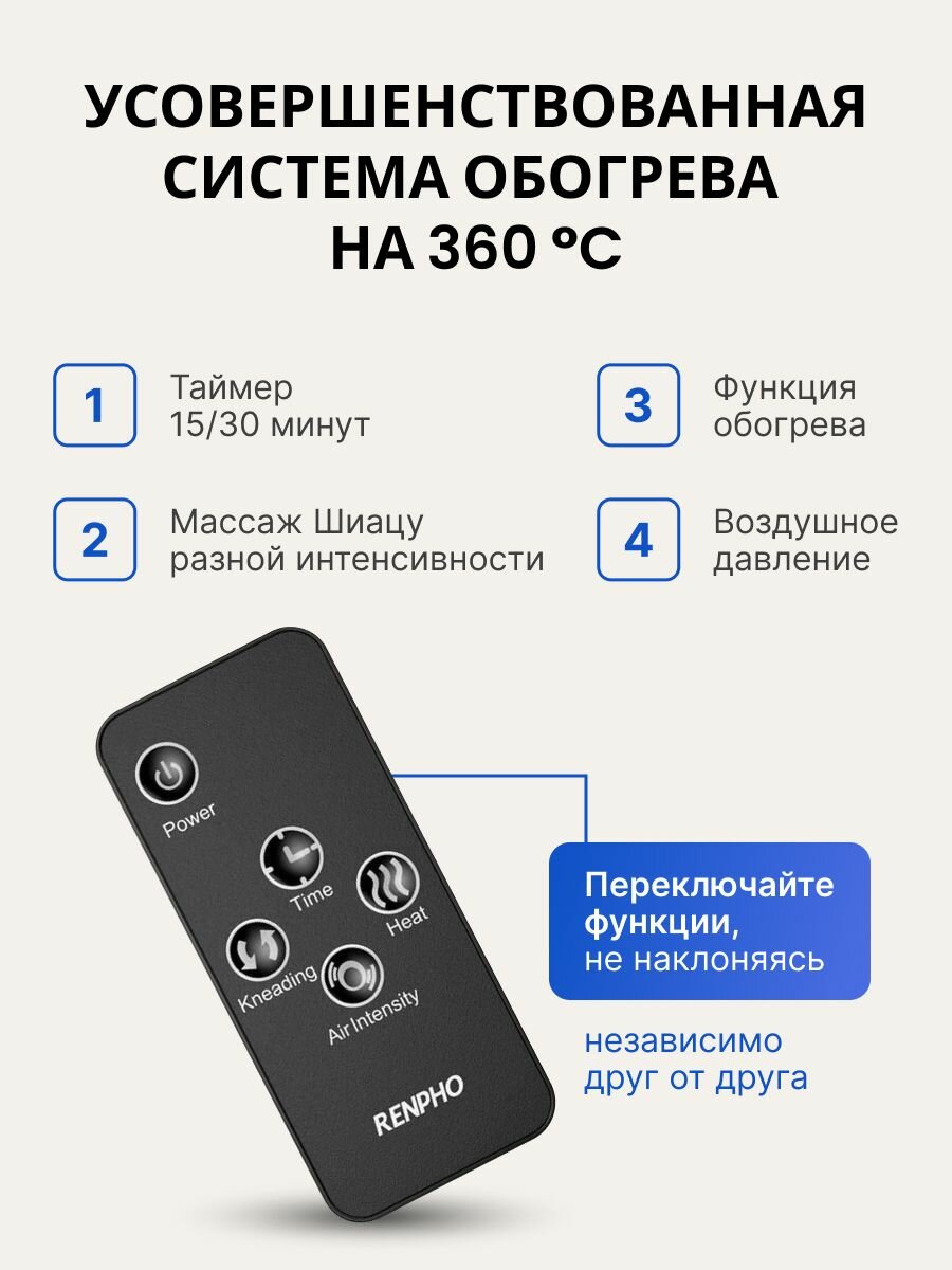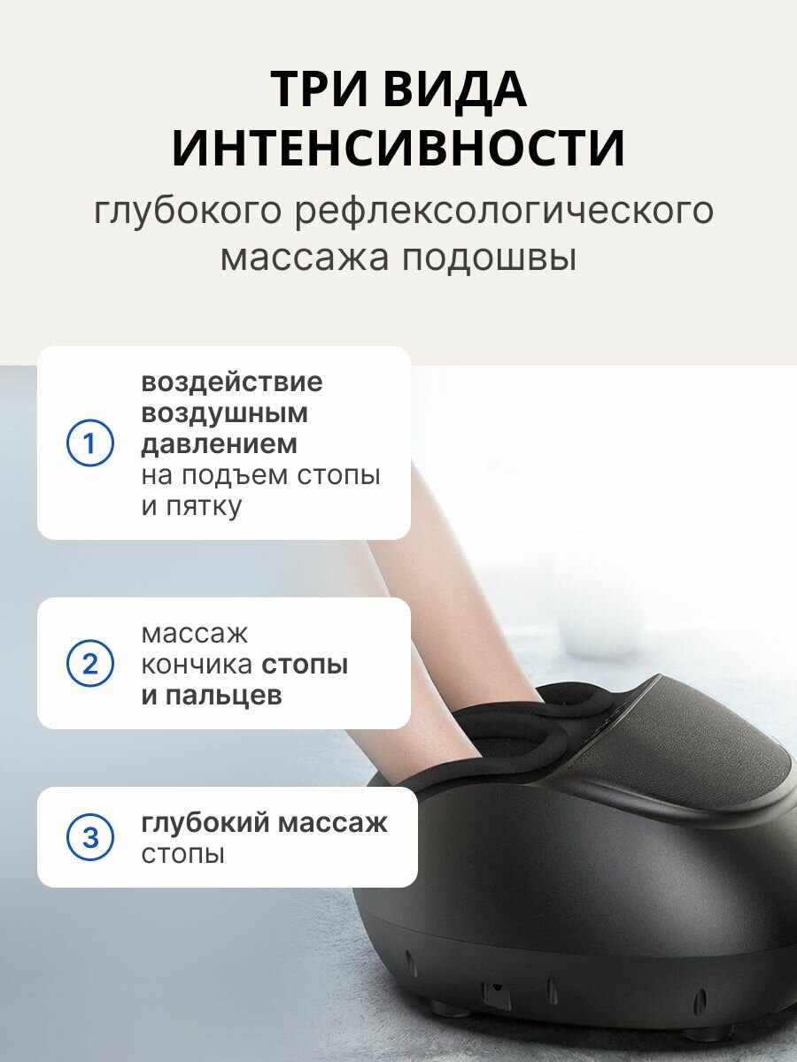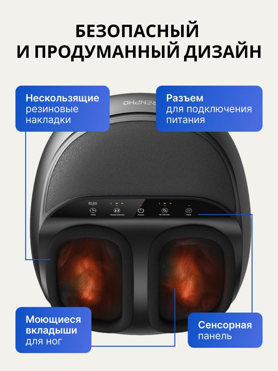 Купить Массажер для ног Renpho Shiatsu Foot Massager Pro + RF-FM059 электрический, с 3 уровнями интенсивности и воздушного давления, подогревом и сенсорным экраном, черный с доставкой по всей России.