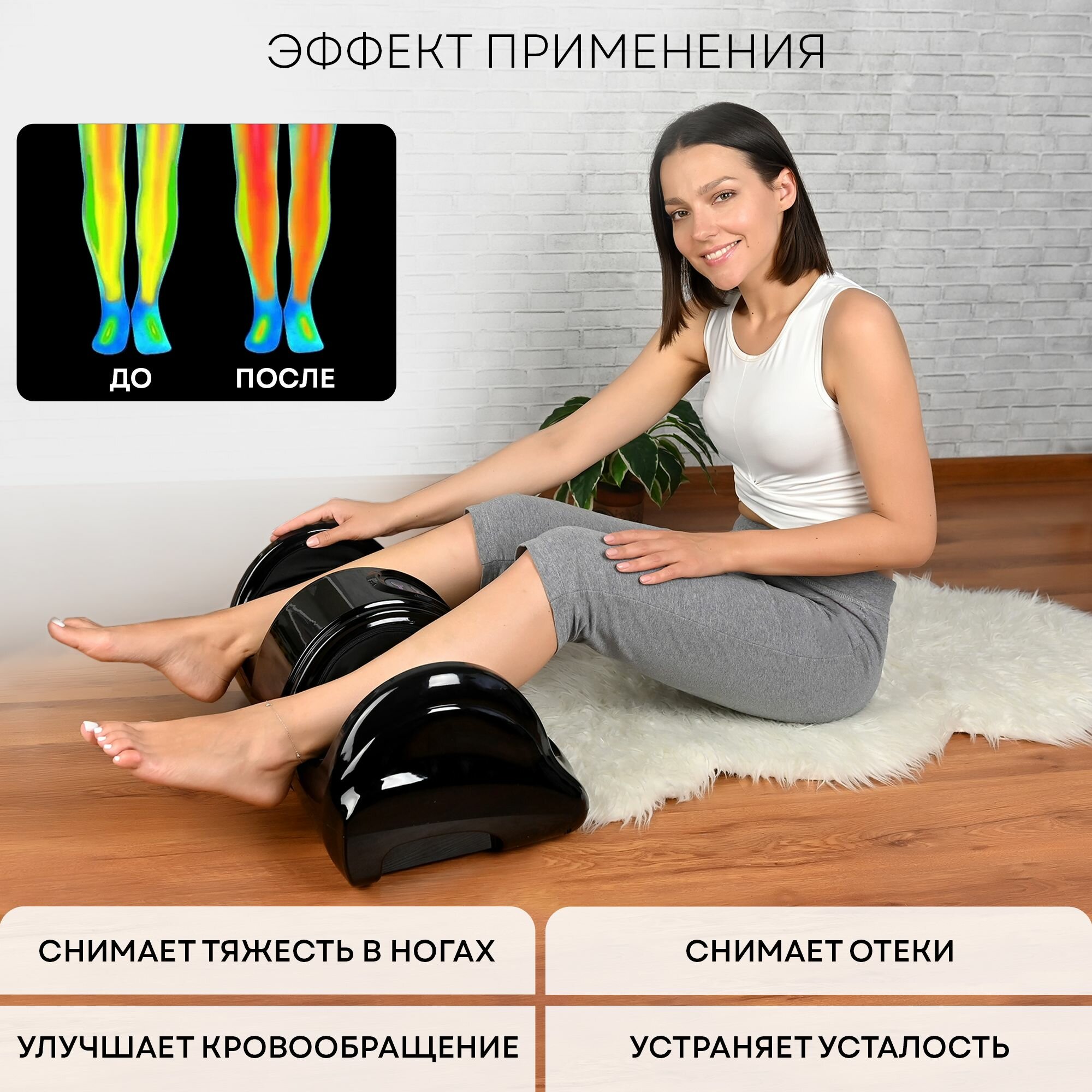 Поставьте массажер на ровную поверхность и подключите прибор к сети 220 В. Поместите ступни/руки/икры в два отверстия и включите массажер кнопкой ВКЛ. Далее выберете необходимый вид массажа
