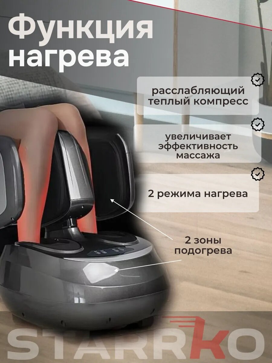 Массажер для ног STARRKO, электрический, роликовый, с ИК-прогревом и компрессией