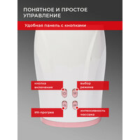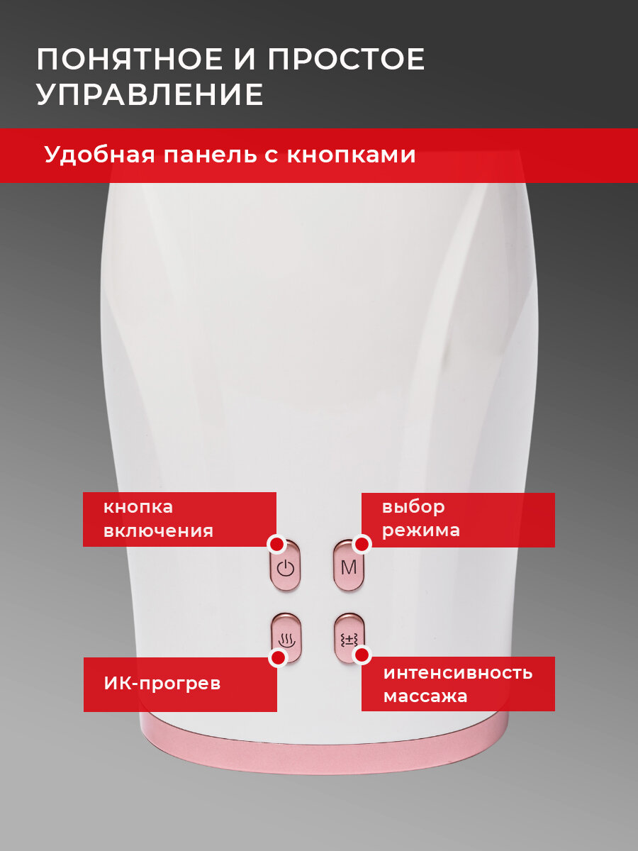 Устройство имеет 3 режима работы и 3 уровня интенсивности массажа, что позволяет выбрать наиболее подходящий вариант для каждого пользователя. Функция инфракрасного подогрева имеет 2 уровня, а также возможность полного отключения.