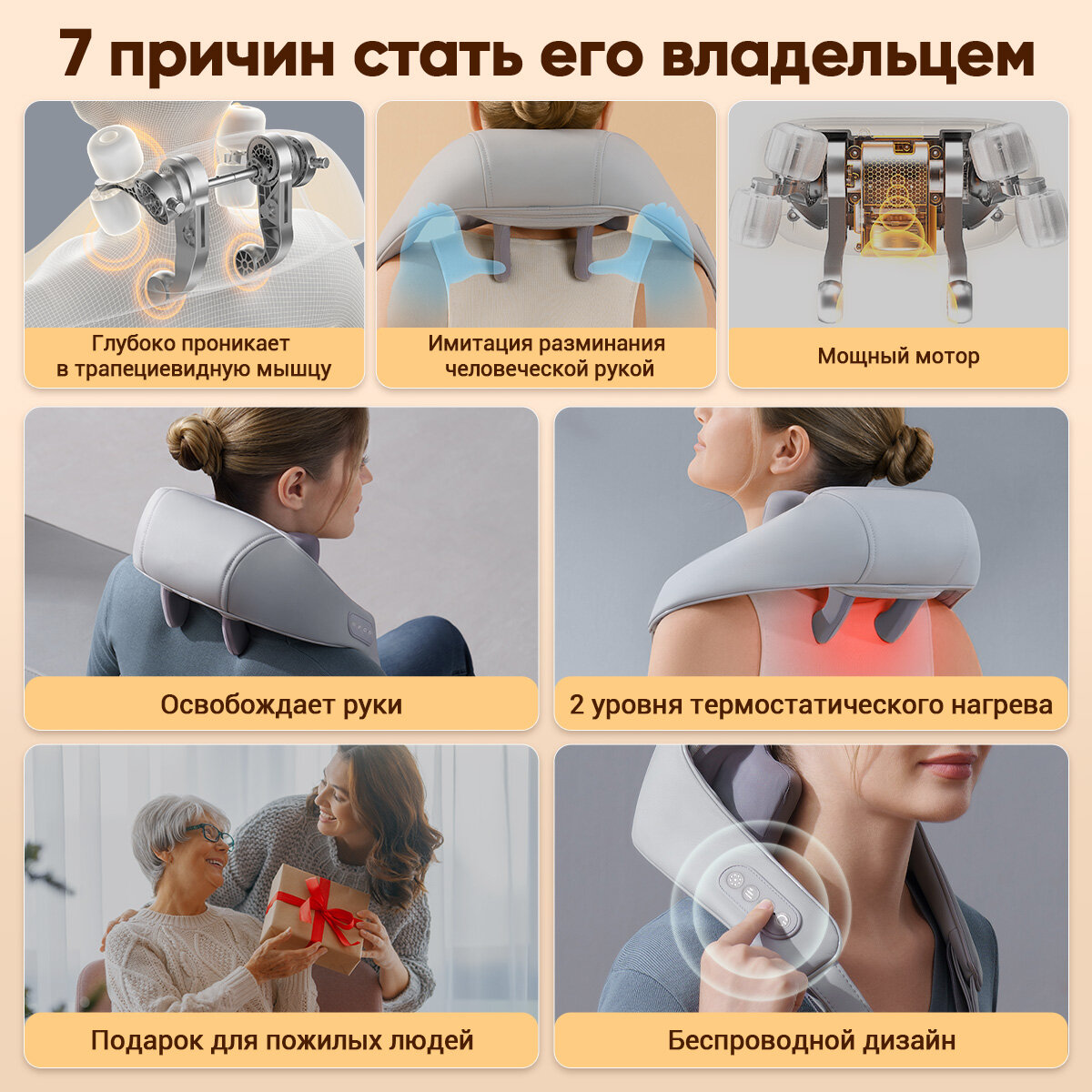 Купить Массажер для шеи и плеч, спины и тела с подогревом KaringBee KB-S01 Neck Massager, Серый с доставкой по всей России.