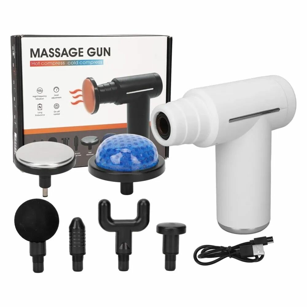 Массажер для шеи и тела перкуссионный, массажный пистолет для спины (6 насадок)