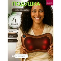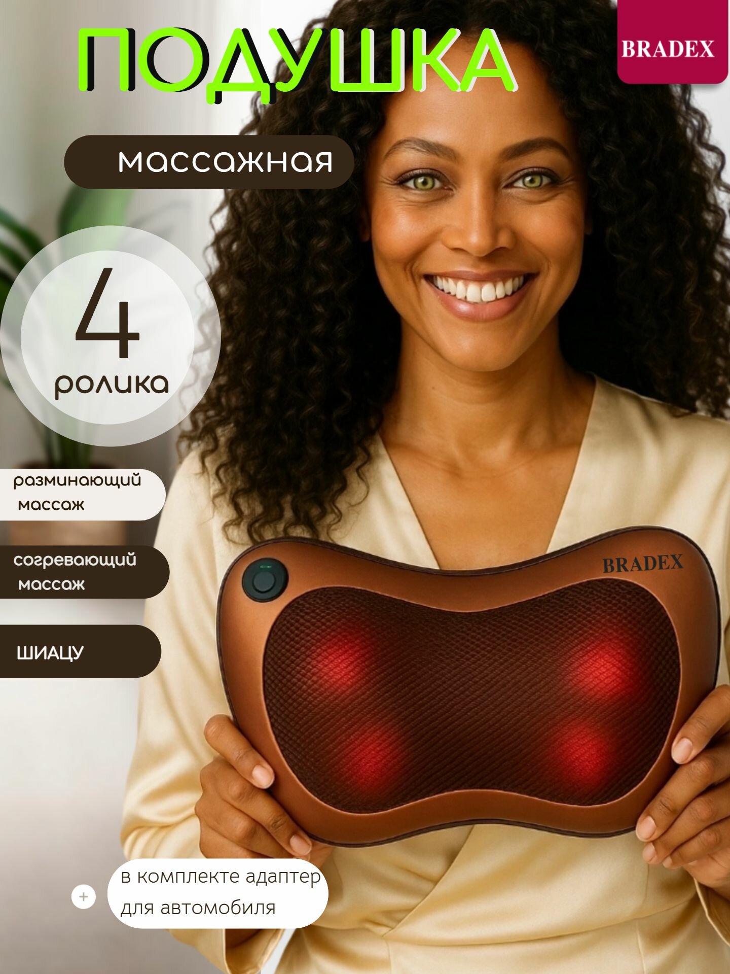 Купить Массажер для шеи массажная подушка шиацу BRADEX, с подогревом и роликами, коричневая с доставкой по всей России.