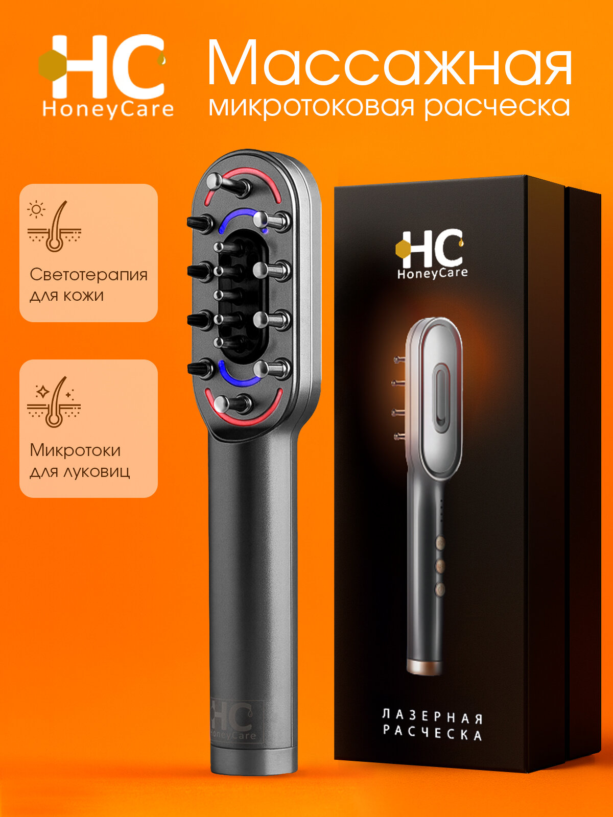 Устрой себе подарок - лазерная расческа от выпадения волос HoneуCare Hair Pro - это прибор для ухода за волосами, который сочетает в себе микротоки и светотерапию.