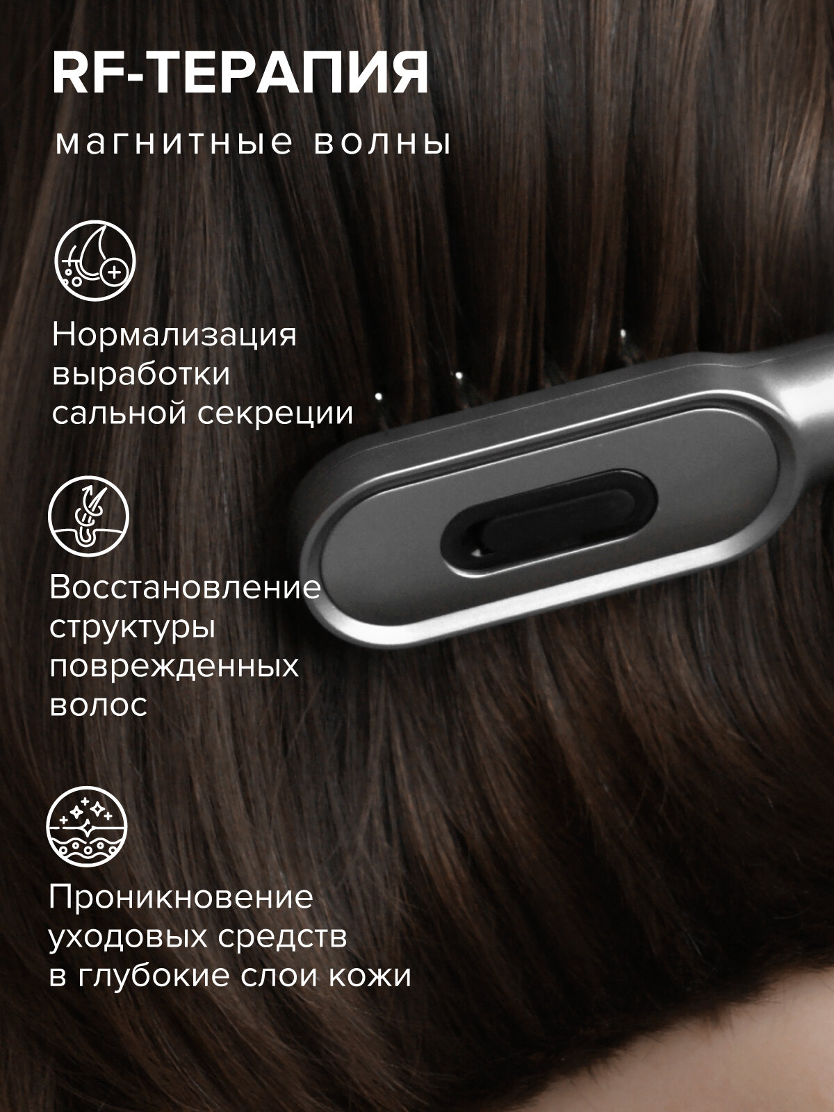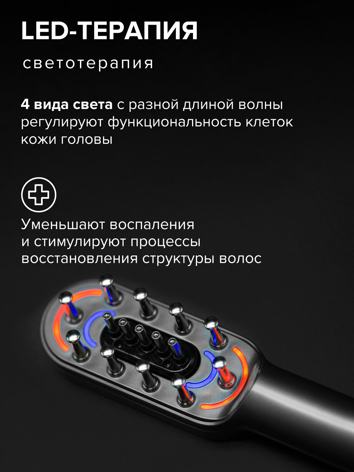 Светотерапия, используемая в расческе, помогает улучшить состояние кожи головы и волос, делая их более здоровыми и крепкими.
