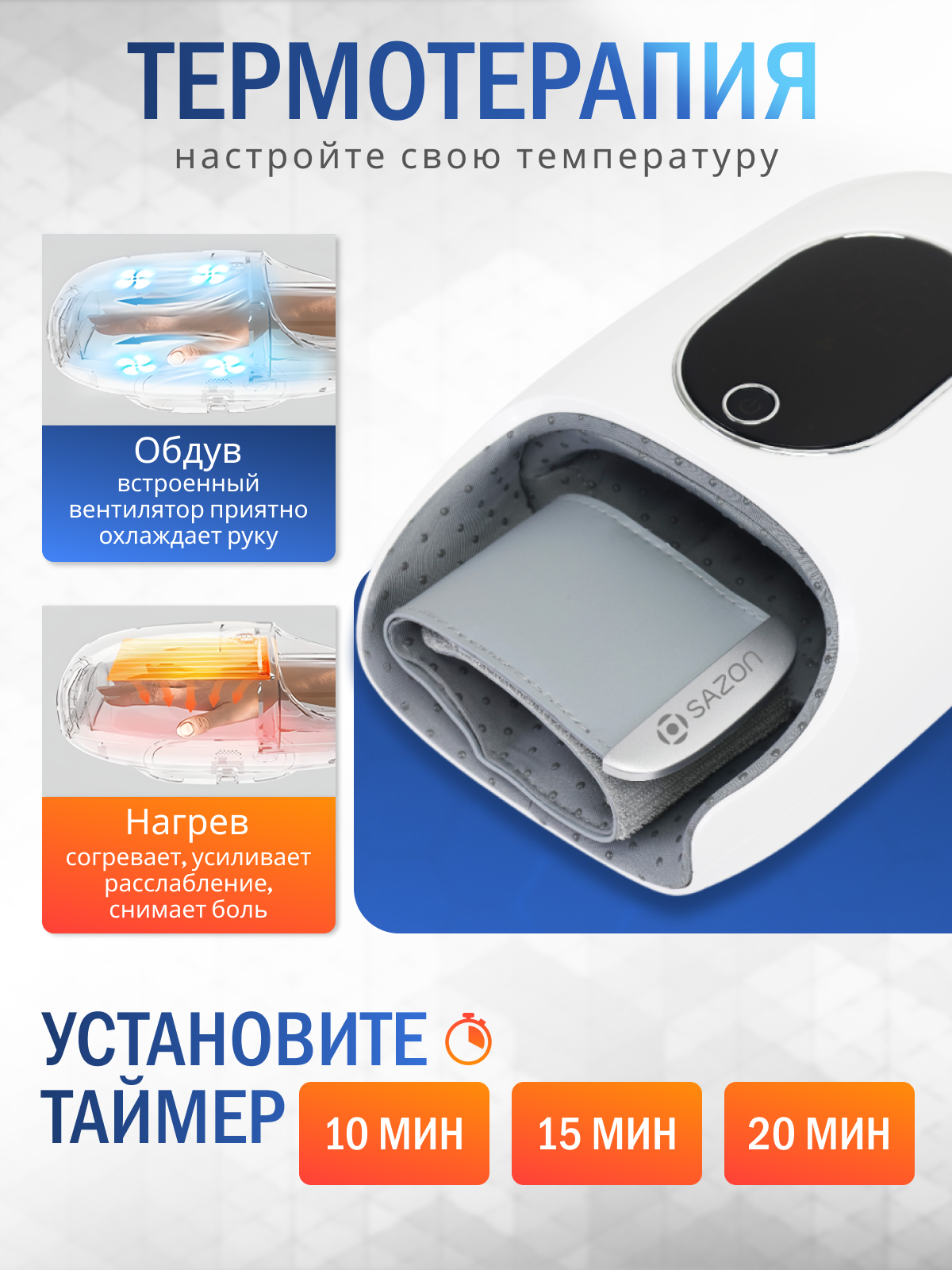 Купить Массажер электрический для кистей рук и пальцев с подогревом, SAZON AirHand MAX с доставкой по всей России. Массажер электрический для кистей рук и пальцев с подогревом, SAZON AirHand MAX: сравнение цен, характеристики, фото, актуальное наличие и цены.