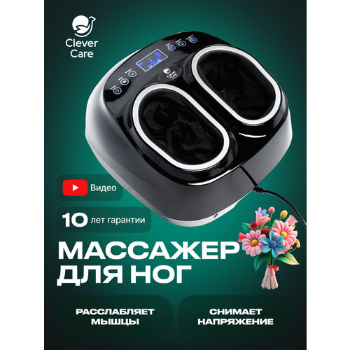 Массажер для ног CleverCare это отличный прибор для проведения полноценного массажа ступней в домашних условиях. Стильный эргономичный дизайн, легкий (3 кг), компактный (22*31 см), многофункциональный-прибор порадует простотой использования, дистанционным пультом управления и высокой эффективностью воздействия на стопы. 3 встроенных авторежима, ручная регулировка интенсивности, подогрев для большего расслабления и воздушная компрессия - это далеко не все преимущества данного массажера! Массажные ролики прорабатывают основные акупунктурные точки, снимая напряжение, облегчая боль и укрепляя весь организм. Снимает отеки, осуществляя массаж Шиацу и воздушно-компрессионное воздействие. Каждую функцию можно использовать по отдельности, если есть такая необходимость. Удобный информативный цифровой экран, сенсорная интуитивно понятная панель, возможность управления с пульта, съемные чехлы, которые можно стирать - все для вашего комфорта и удовольствия от использования!